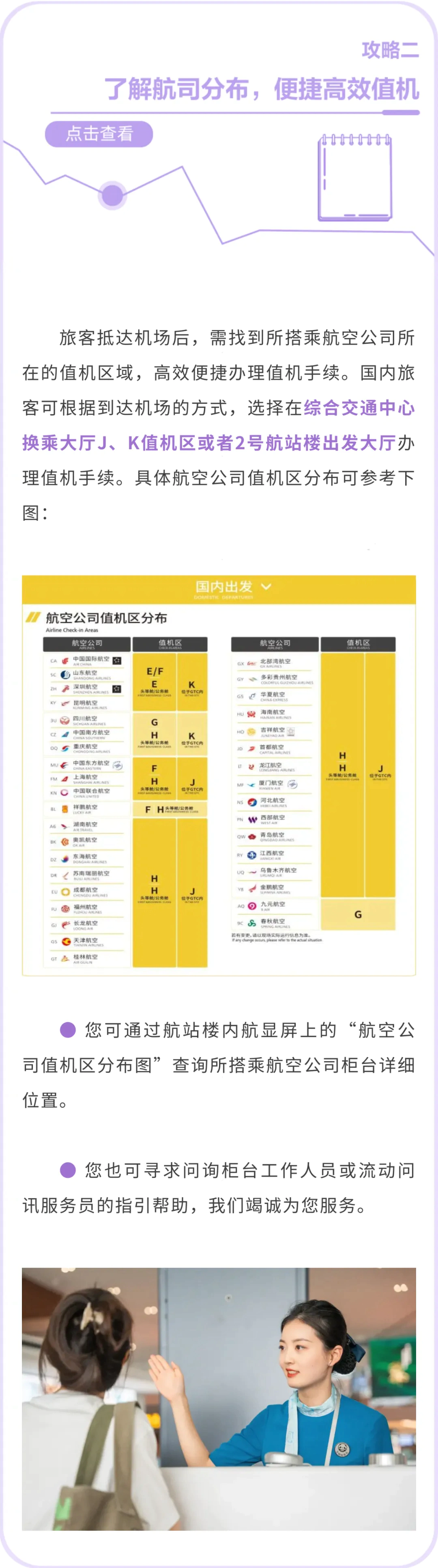 综合交通中心J、K值机区及空港酒店M值机区,乘机手续办理截止时间由“航班计划起飞前60分钟”调整为“航班计划起飞前55分钟”