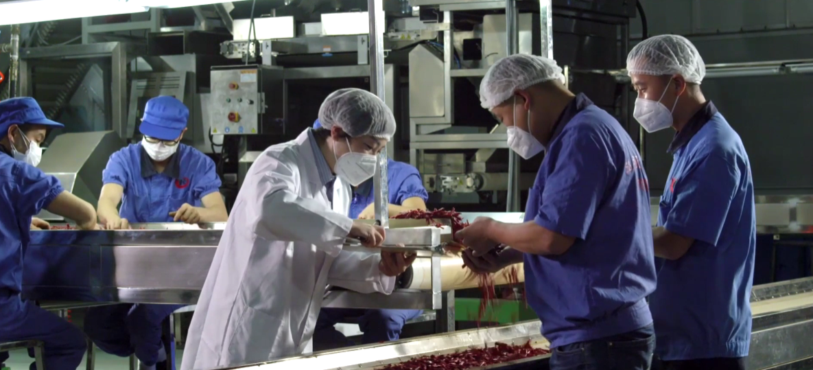 “辣椒加工之前,要经过去石机、振动筛、色选机、型选机以及X光机等工序层层把关。”翠宏食品研发部工作人员黄维涛说,净选是品控的关键,经过净选系统的辣椒原料,异物管控率达99.8%,就算一根头发也能被精准筛选出来。