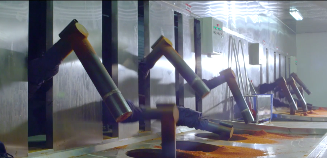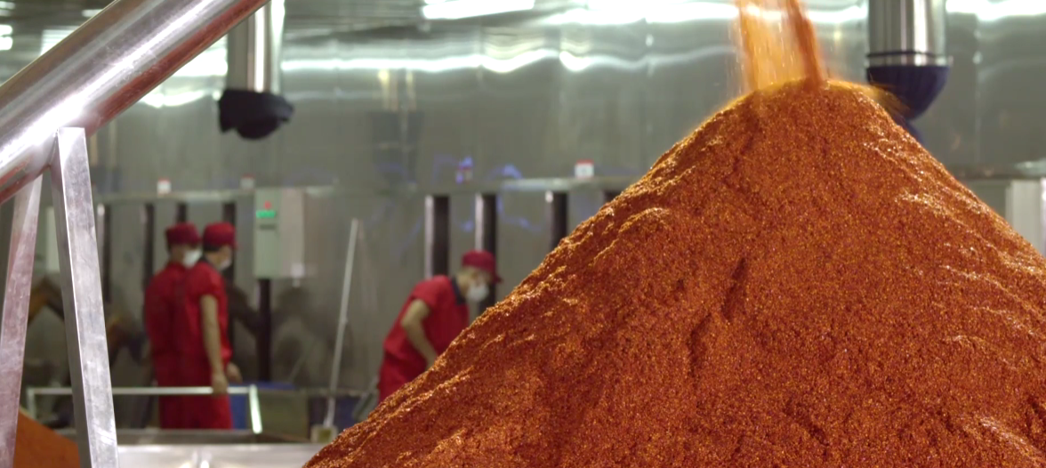 雷小玲举例说,制作辣椒面核心工艺是一选、二炒、三舂制。炒制后的辣椒经过舂制可以充分释放辣椒碱、辣椒素,激发辣椒的香味。公司研发团队经过对设备的改造,将“川人制辣”的传统工艺融入现代化技术,研发出机械臂摏制技术,在留住传统工艺的同时,极大地提升了生产效率。