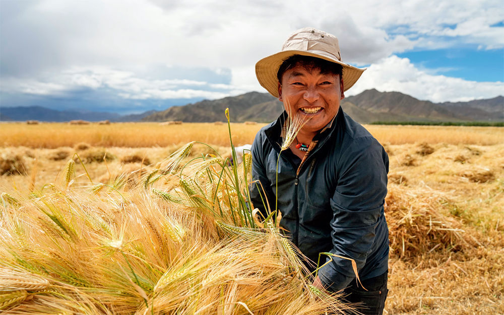 西藏日喀则市白朗县巴扎乡农民在收获青稞(2024年9月10日摄)