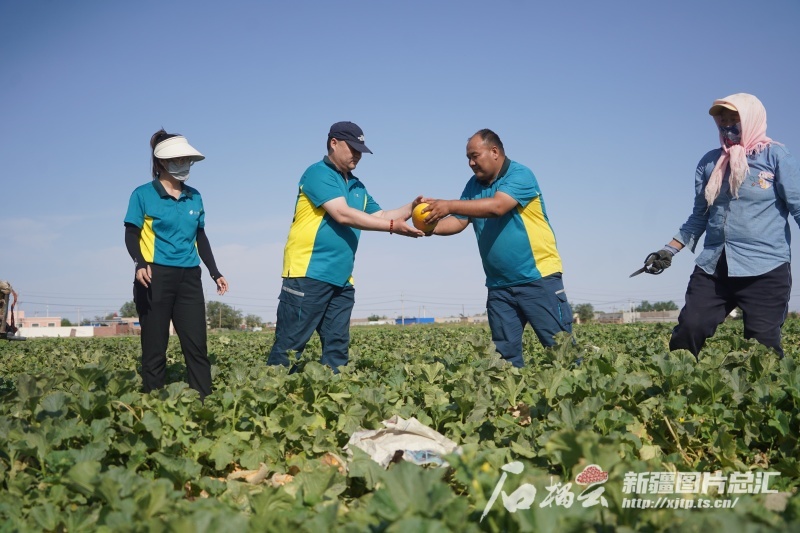 哈密市邮政分公司工作人员帮助瓜农采收哈密瓜。冯思佳摄