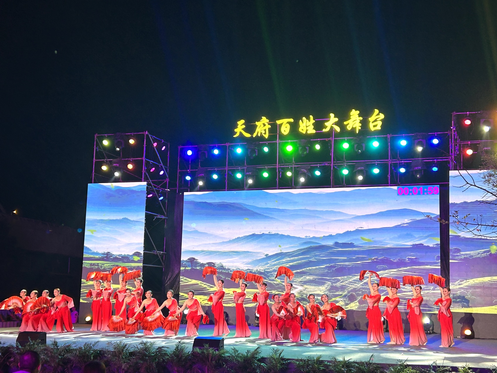 来自富顺县代表1队的舞者们,以广袤的稻田风光作为背景,身着农装,翩翩起舞。她们的动作柔美而富有韵律,仿佛随风摇曳的秧苗,又似飘散着香气的稻花,生动地展现田园之美,让人仿佛置身于一片宁静而丰收的田园之中。