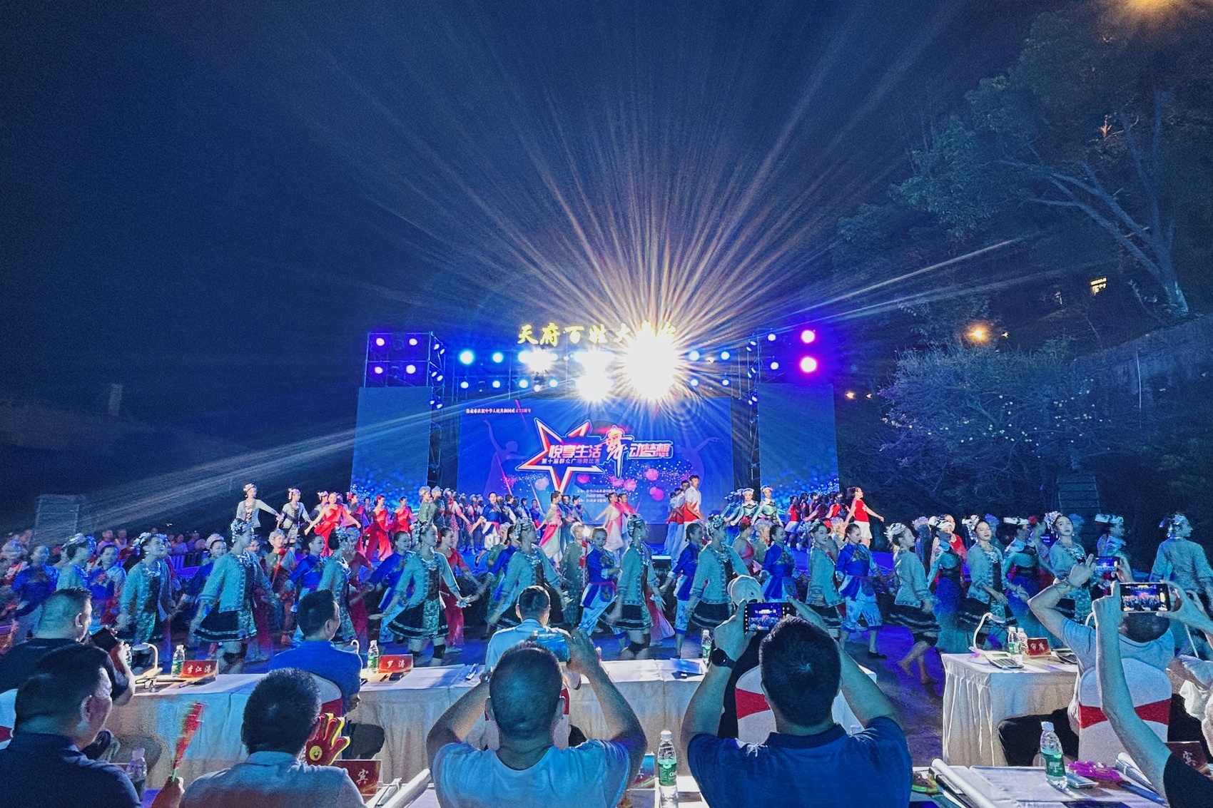 此外,各参赛代表队还同跳《唱支山歌给党听》,以激情的旋律、优美的舞姿歌颂中国共产党,礼赞新中国。经过激烈角逐,最终自流井区代表队与贡井区代表队脱颖而出,荣获一等奖;富顺县代表2队、大安区代表队以及荣县代表2队表现出色,荣获二等奖;而富顺县代表1队、自贡高新区代表队和沿滩区代表队也获得三等奖的佳绩。
