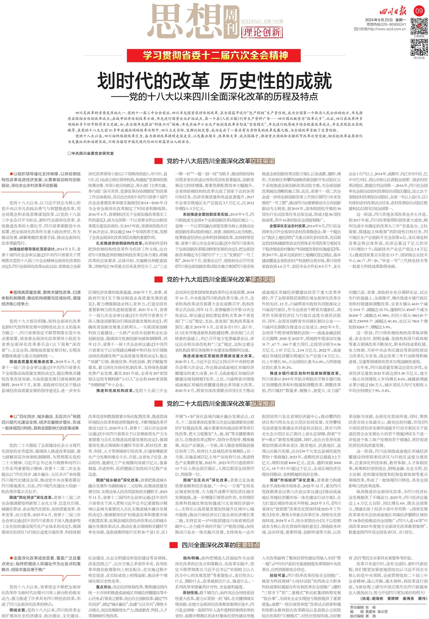 划时代的改革 历史性的成就——党的十八大以来四川全面深化改革的历程及特点