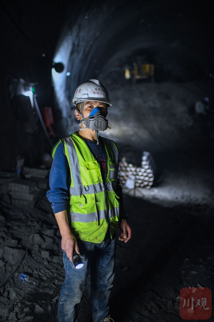 8月13日,值班长陈亮在西宁至成都铁路四川段红原2号隧道内。他每日往返洞内数十次,工作超10小时,主要负责观察施工情况及人员调度。