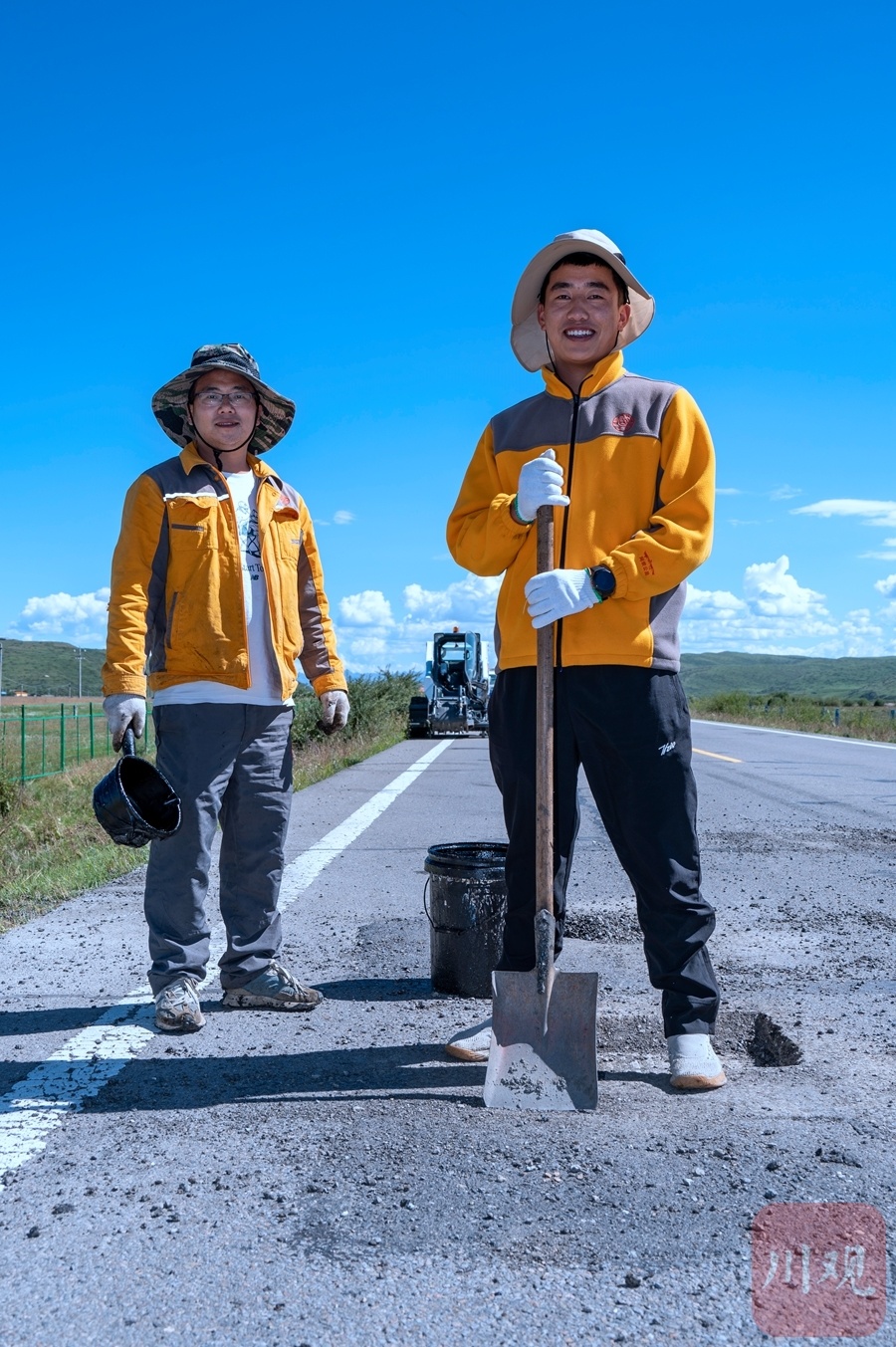 尼玛木滚,黝黑的脸庞是他青春的印记。夏日的阳光炽热,国道317线上,一位“00后”小伙正挥汗如雨修补路面。尼玛木滚和他的同事们,负责阿坝州红原县刷经寺镇附近约40公里路段的养护工作。尽管他只工作了两年,但日复一日的户外劳动,已让他的皮肤被晒成了古铜色。面对记者的镜头,他笑着说:“我们要保证道路畅通无阻,这点晒不算什么。”