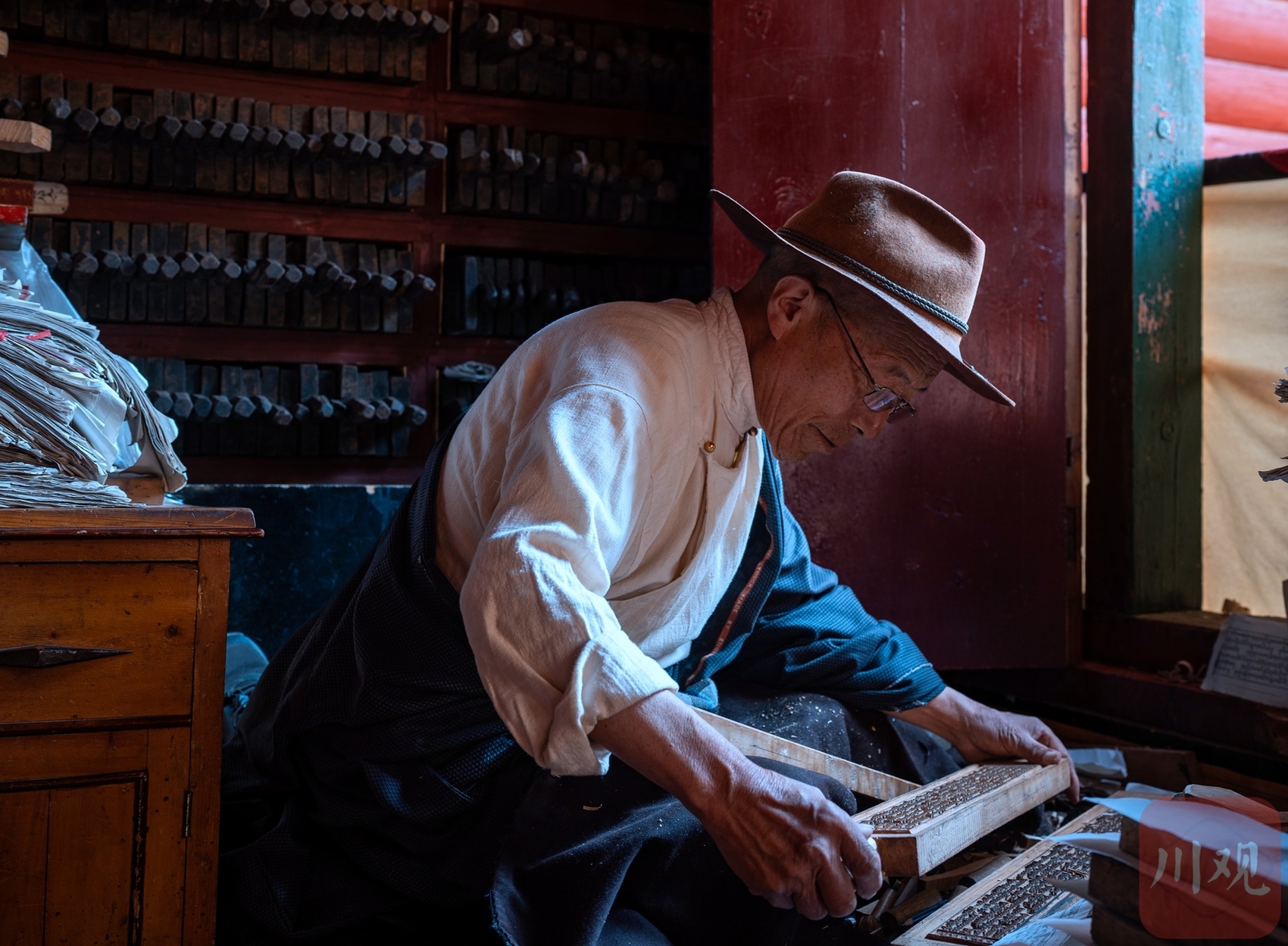 8月28日,甘孜州德格县德格印经院,69岁的彭措泽仁在校对修复雕版。作为德格印经院藏族雕版印刷技艺的代表性传承人,他已从事这项工作40余年。