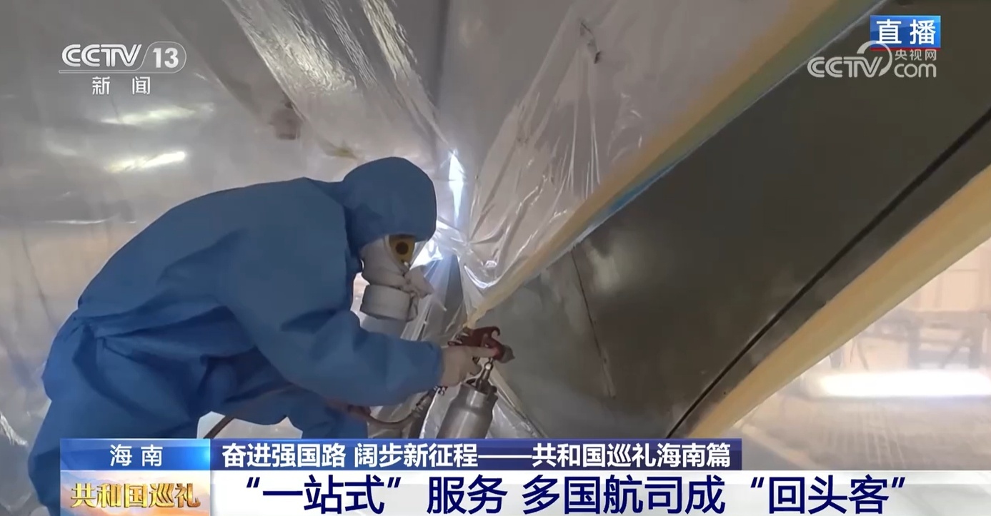 央视网消息:得益于自贸港政策优势,海南大力发展飞机维修业务,带动临空产业集群,可以说是“在自贸港,修全球飞机”。那么为什么各国航司青睐来这里修飞机呢?总台记者范珊珊现在就在海南自贸港一站式飞机维修产业基地,请她带我们去了解一下。