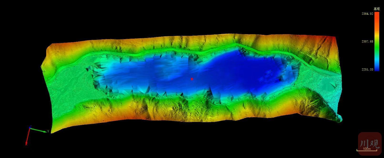 通过“空天地一体”的数据采集分析,形成九寨沟湖泊群(图为犀牛海)的水上水下融合高程模型。