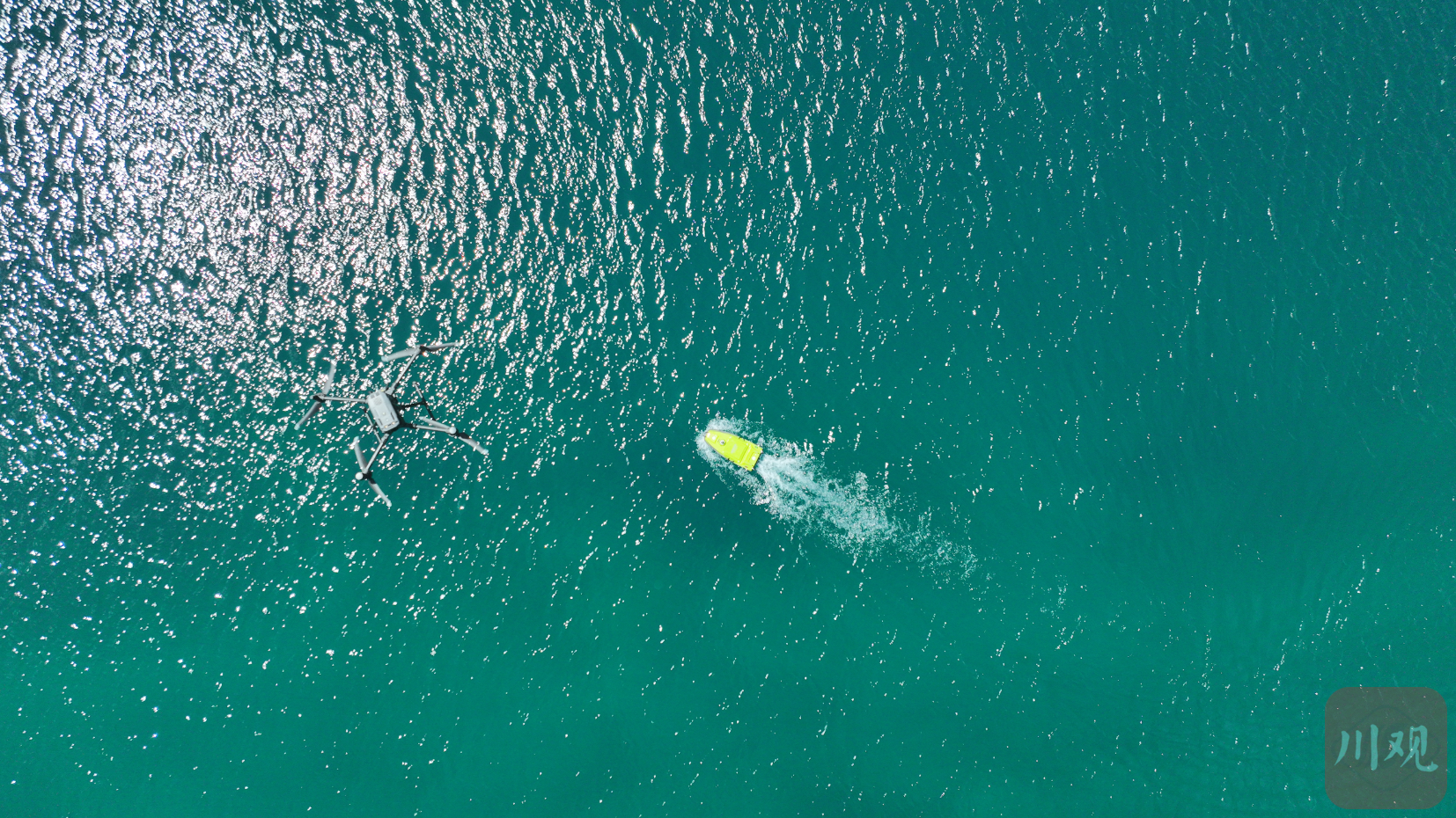 9月10日上午,九寨沟长海,一艘搭载多波束测深仪的无人船快速驶入湖面,紧随其后,一架搭载长测程激光雷达系统的无人机也升空作业。两台高科技测量设备密切配合,对九寨沟内这个最大、最深的高山湖泊进行水下、水上同步测量。