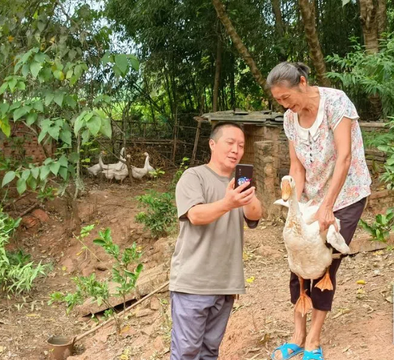 “注意,镜头里的村民叫祝木香,是新屋坝村2组的村民,大家猜一下她背篼里装的什么?哦,原来是5只土鹅,每只的重量在6至7斤,感兴趣的朋友可以下单。”9月23日上午8点,荣县新桥镇新屋坝村党群服务中心广场上,“新农人”熊仁根正通过直播平台卖力地推荐家乡的土特产,直播间里的评论不断滚动。