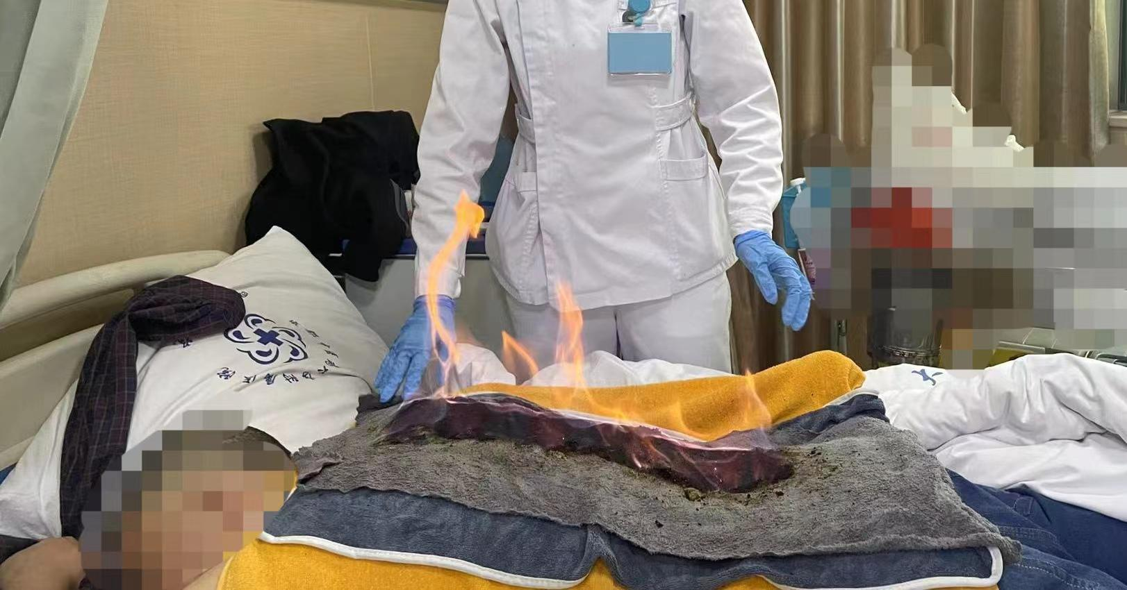 4.火龙灸:又称铺灸、督灸、长蛇灸、督脉铺灸。火龙灸是依托于经络理论,以温通任督二脉,有调阴合阳、通经活络作用,而防治疾病的一种隔物灸。是一种来源于民间的传统隔物灸法,具有施灸面积大艾炷大火力足温通力强等特点。