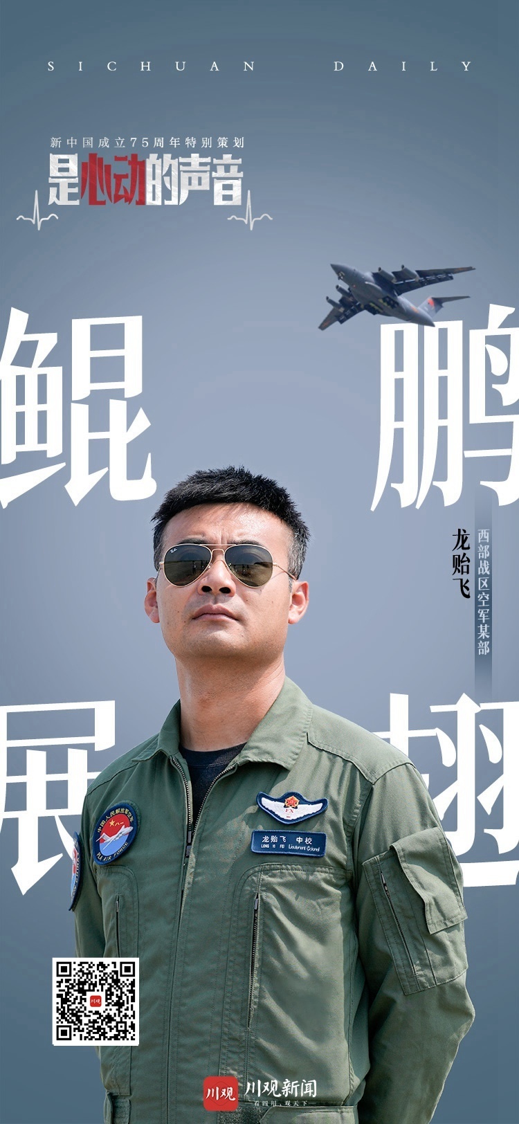 2019年秋,新中国成立70年。3架运-20和3架运-9运输机组成楔形编队,在全世界的瞩目下飞过北京天安门广场。龙贻飞驾驶着备份机,尽管没有出现在镜头之中,但他心中的激动与喜悦却与飞越天安门的战友们相同——“你就是我,我就是你,不分彼此。”