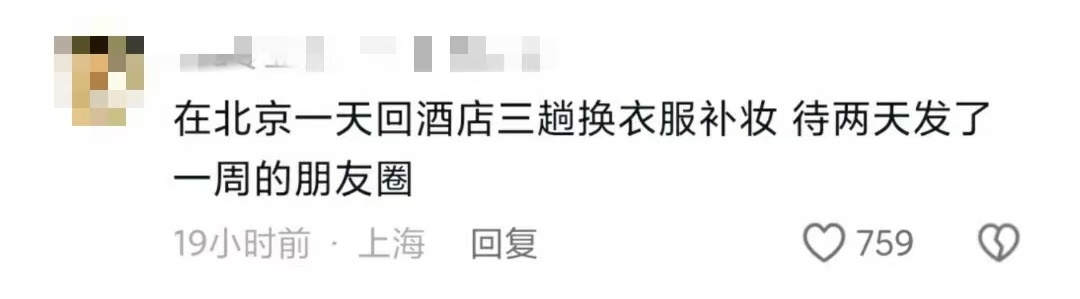 在某社交平台的热榜话题下,博主挑战“一天拍完国庆7天朋友圈”的视频得到了18.7万赞。视频中,她从下午三点开始拍到晚上,6个小时拍了1536张照片。“国庆七天我提前享受了!”评论区有高赞评论表示了认同,“这样真的很好,一天拍完,剩下六天都不用化妆打扮了”。