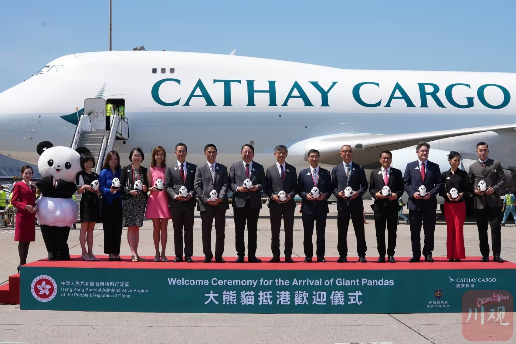 9月26日11时11分,大熊猫“安安”“可可”平安落地香港国际机场,接下来,将被送往香港海洋公园定居。当日上午,大熊猫抵港欢迎仪式在香港国际机场停机坪启动,香港特区政务司司长陈国基和文化体育及旅游局局长杨润雄出席。