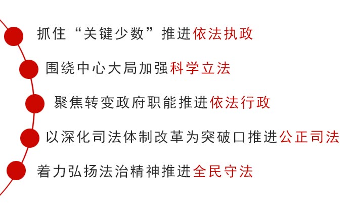 聚焦“关键少数”。省委贯彻习近平总书记全面依法治国必须抓住领导干部这个“关键少数”的重要指示,作出“三个不可低估”重要判断,着眼“长期执政、长治久安”两个历史性课题,对党委领导和支持人大、政府、政协、法院、检察院依法依章程履职尽责作出工作规范,对党领导立法、保证执法、支持司法、带头守法做出实施性制度安排,制定抓住“关键少数”推动工作落实《意见》,出台党政主要负责人履行法治建设第一责任人职责实施办法,以衔接配套、备案审查、实施后评估制度构建党内法规体系,以省委工作规则规范党代会、全委会、常委会议事决策,用制度巩固发展风清气正、崇廉尚实、干事创业、遵纪守法良好政治生态。