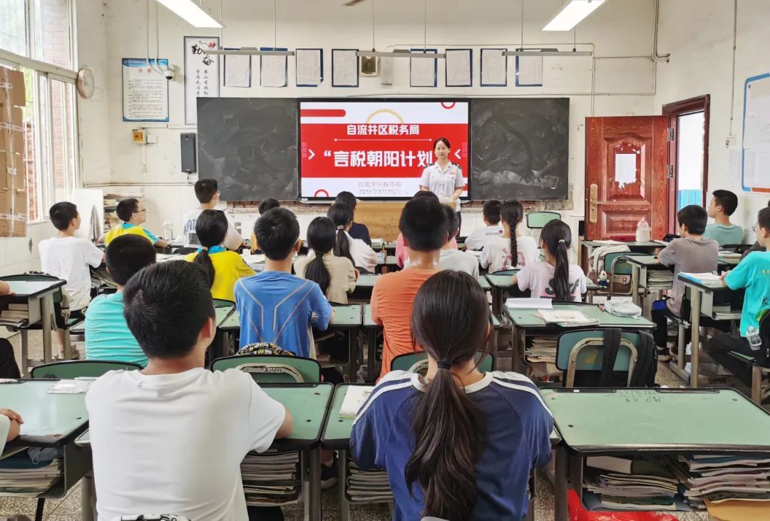 为积极响应国家关于加强青少年法治教育号召,提高税法知识普及率。近日,自流井区税务局走进自贡市德铭中学,深入开展“言税朝阳计划”税收普法活动。
