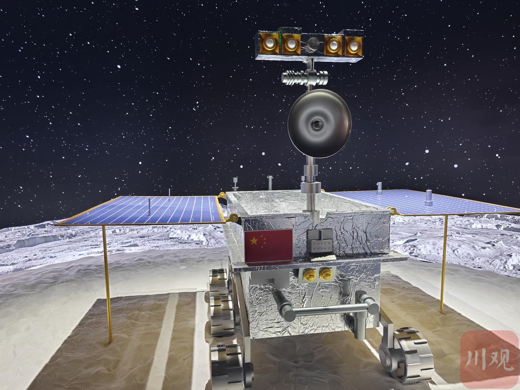 在航天科技沉浸艺术展厅内,12个沉浸式展区,呈现了10余件航天展品与艺术装置。观众能够近距离看到长征系列火箭、祝融号火星车等航天器模型,还可互动体验太空电梯升空、太空黑洞,领略宇宙的浩瀚与神秘。