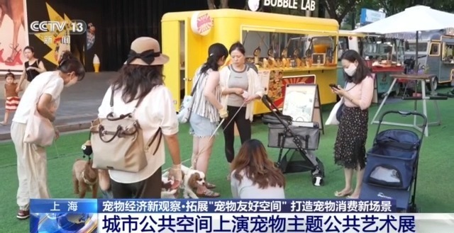 不仅博物馆打破传统,拓展宠物友好空间,一些商圈也开始打造宠物消费场景。日前上海外滩附近,一场以狗狗为主题的公共艺术展在城市公共空间上演。20多只外表可爱的“网红狗”大型艺术装置落地在商圈内,吸引不少市民前来打卡。