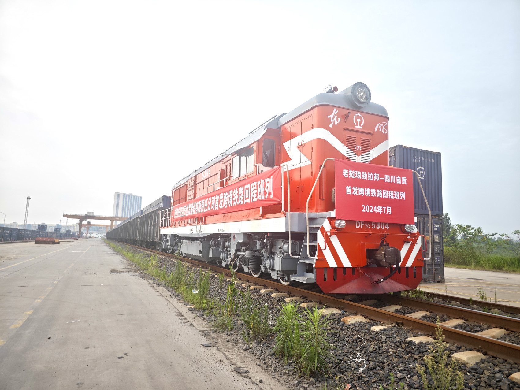 老挝琅勃拉邦-四川自贡首发跨境铁路回程班列。