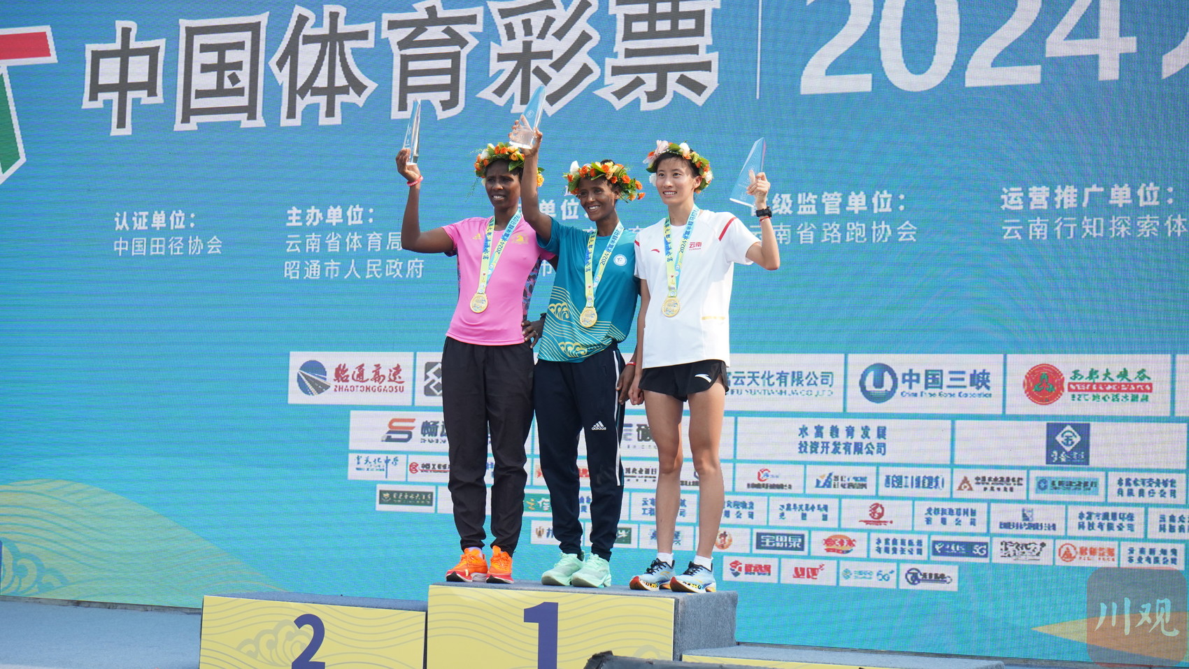 跑者们身着各式运动装备,其中还有不少选择超人服、小丑服等“盛装”参赛,为赛事增添一抹亮色,沿途的加油声此起彼伏。经过激烈的角逐,云南本土选手赵香波以1小时零7分40秒的成绩夺得男子组比赛第一名;埃塞俄比亚选手以1小时零15分44秒的成绩夺得女子组比赛第一名。