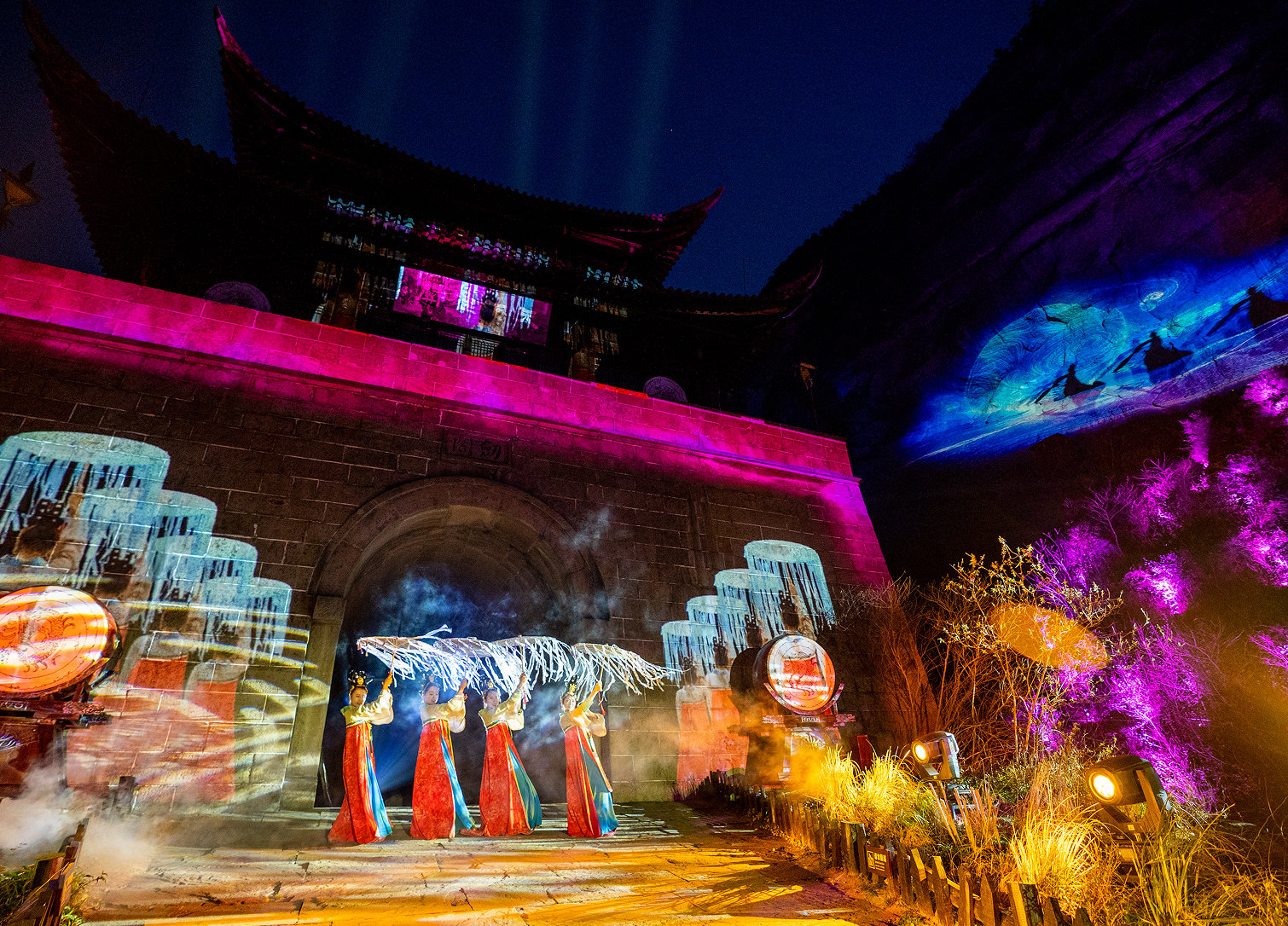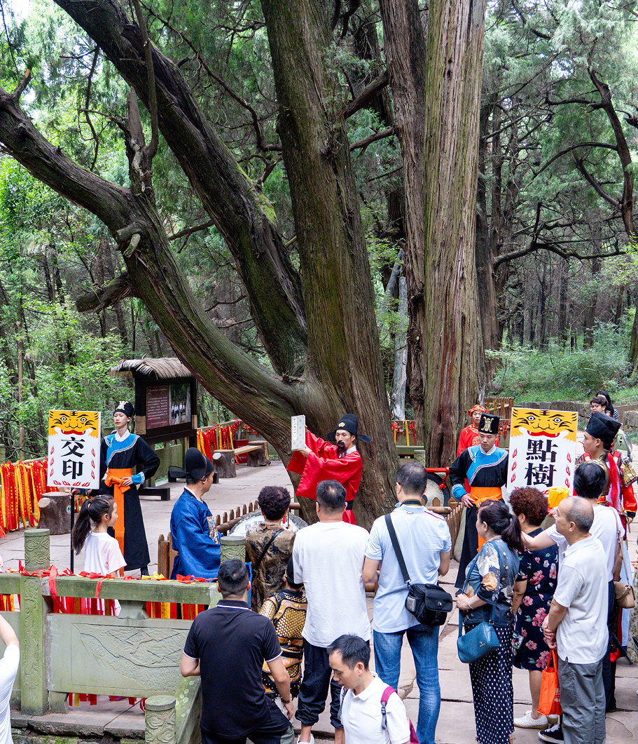 蜀道悠悠,文韵绵长。国庆假日期间,在剑门关、翠云廊景区多个点位,《开关仪式》《陆游过剑门》《点树交印》《张飞植柏》等实景演绎轮流上演,以古蜀道传奇历史人物原型,再现传奇故事。