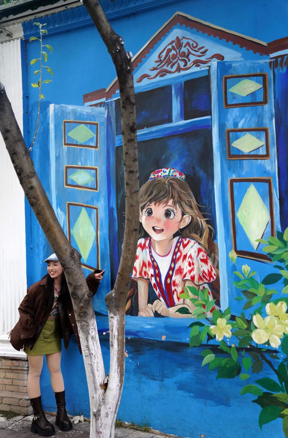 9月27日,游客在六星街一处涂鸦墙前留影。新华社记者 赵宇思 摄