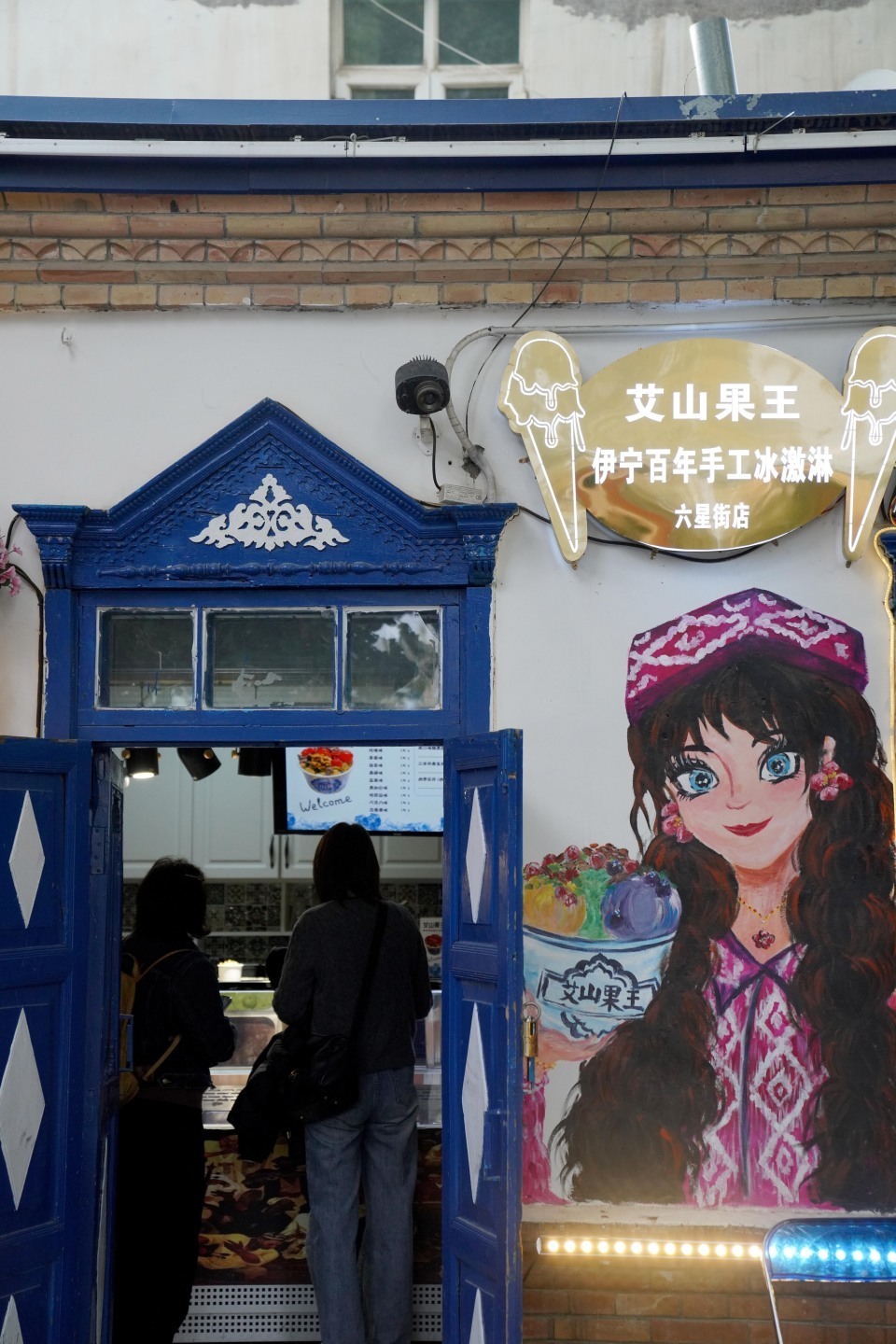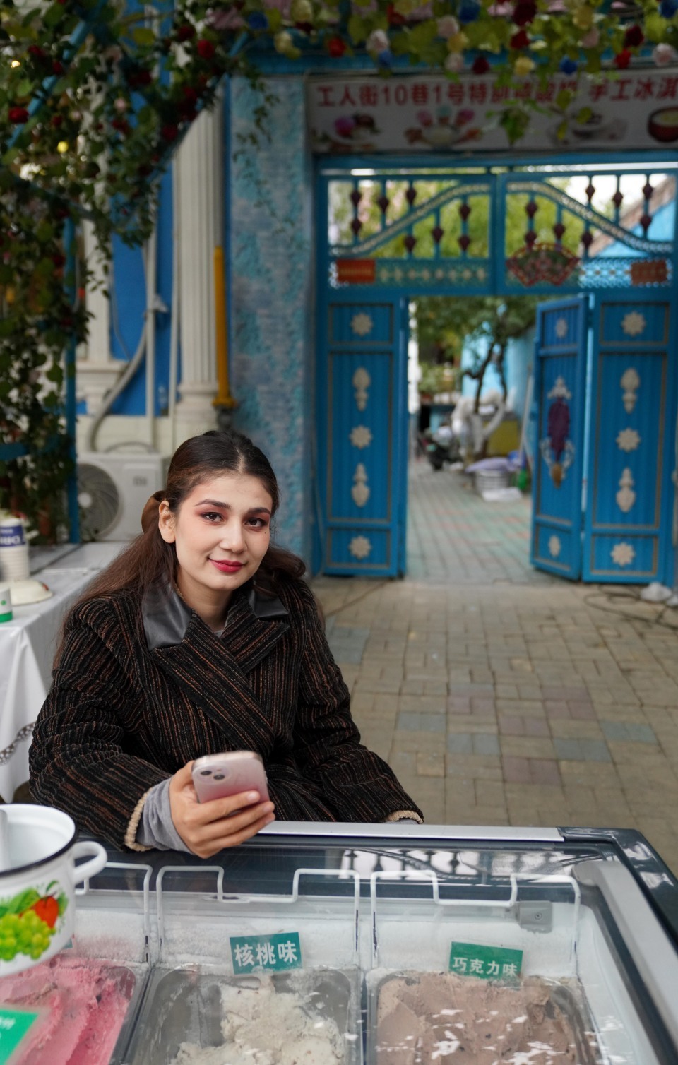 9月27日,在伊宁六星街,一家冰激凌店的店主在等待顾客。新华社记者 赵宇思 摄
