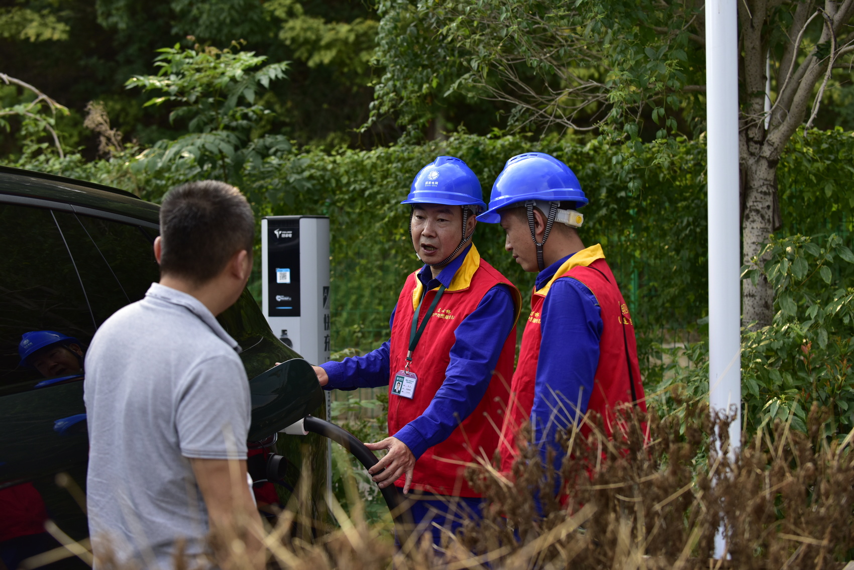 除了对充电站巡视检查外,检查过程中,党员服务队的队员们还向车主详细介绍了充电桩的使用方法和注意事项,并推广了线上查询充电站实时状态的应用程序,帮助车主更便捷地找到空闲充电桩,实现错峰充电,为广大的电动汽车客户提供最优质的电力服务。