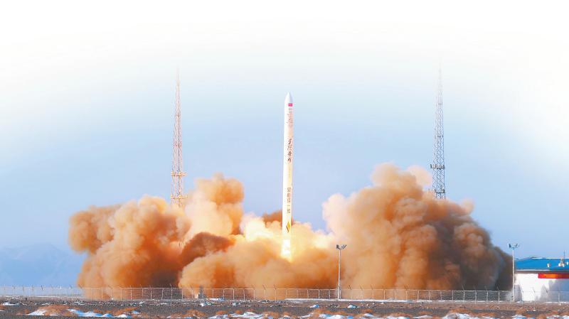 振兴集团旗下基金招引北京星际荣耀空间科技股份有限公司重点航天项目落地德阳什邡市。图为星际荣耀公司双曲线一号火箭发射升空。