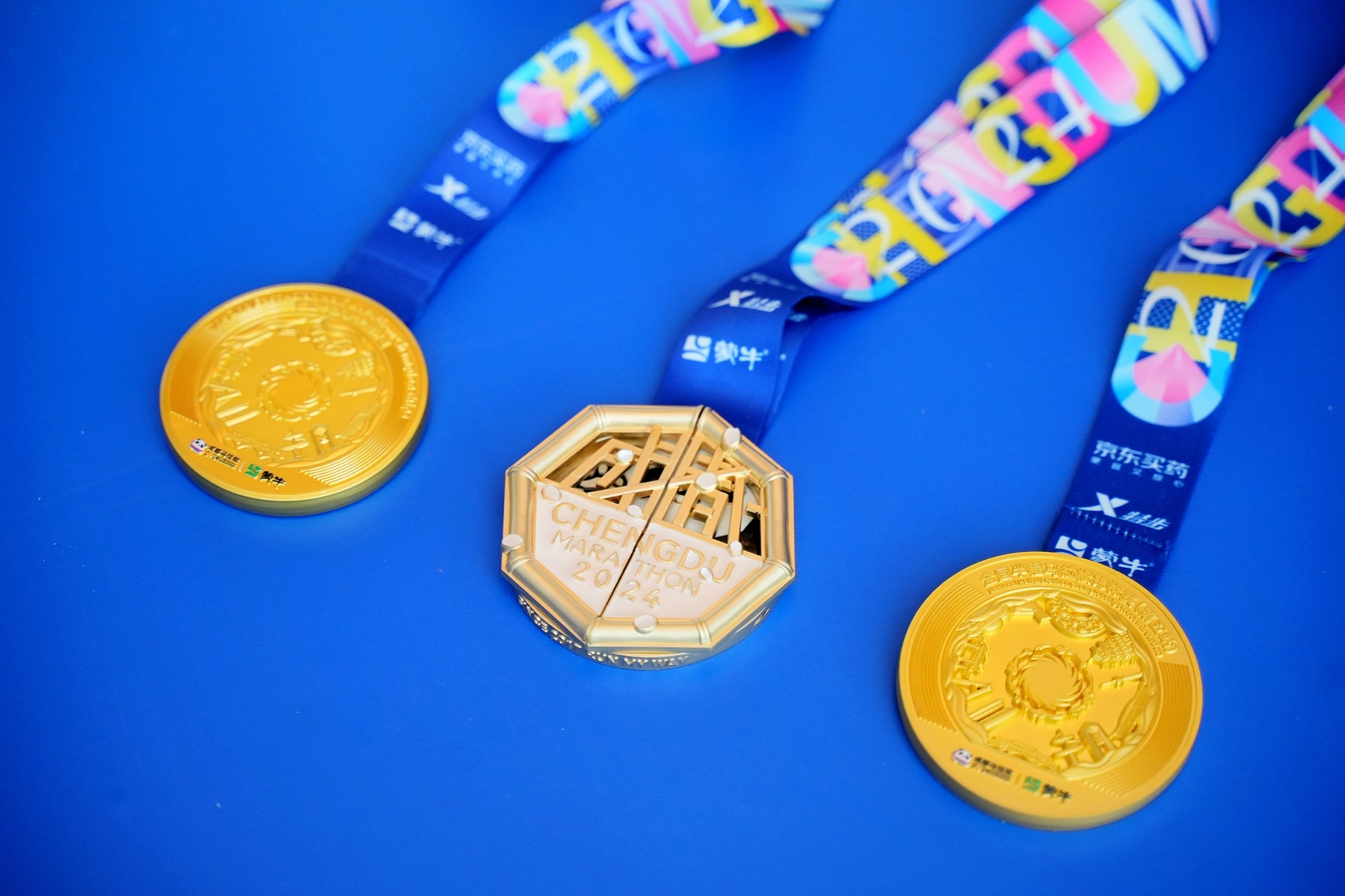 今年的完赛奖牌也别具一格。奖牌设计中包含了“成都”字样,盛开的芙蓉花瓣、经典的熊猫形象,都是成都的文化象征。窗花和八段金竹的元素搭配,结合太阳神鸟图腾,让奖牌融入了中国传统文化的厚重感,也侧面彰显了成都悠久的文化和深厚的底蕴。感光变色材料的使用,让奖牌在不同光照条件下呈现出不同的视觉效果,正面对开窗设计让奖牌进一步增加了互动性和趣味性。半圆柱立体浮雕和赛事浮雕增加了奖牌的立体感和艺术性。结合磨砂和镜面抛光处理,提升了奖牌的质感和视觉层次。UV印刷和烤漆入色技术,保证了图案的持久性和鲜艳度。而今年的参赛服设计灵感来源于赛事路线所途经的成都地标,结合永不言弃的马拉松精神,向所有选手传达着马到成功的寓意。同时成马LOGO中经典的红、黄、蓝三色也融入到设计中,呈现出了充满活力、敢拼搏的运动精神。服装材料选取基于“自由与呼吸”的核心理念,为选手提供无拘无束的穿着体验。同时采用人体工程学设计,立体裁剪减少运动部位摩擦,提供更加贴身的舒适感。