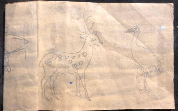 重庆红岩魂陈列馆中展出的“小萝卜头”在狱中画的画