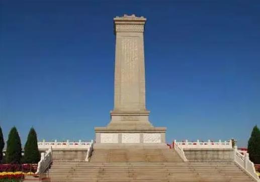 人民英雄纪念碑矗立在天安门广场中心,纪念碑分碑身、须弥座和台基三个部分。纪念碑碑身正面镌刻着毛泽东题写的“人民英雄永垂不朽”八个镏金大字,背面镌刻着由毛泽东起草、周恩来题写的碑文。