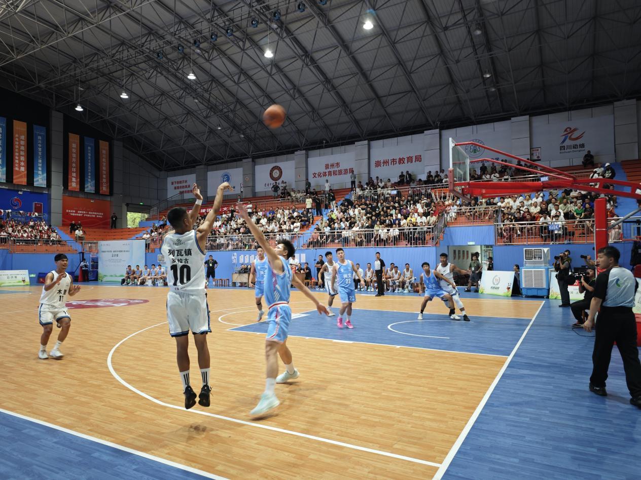 四川省第二届“村BA”总决赛比赛现场,木里列瓦代表队球员投射三分。