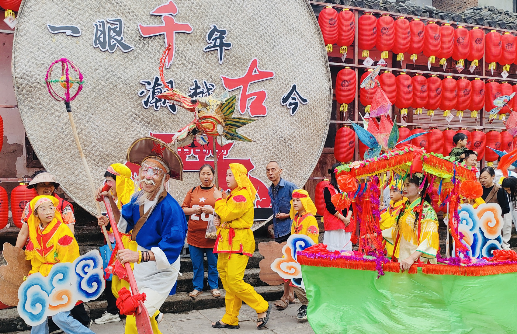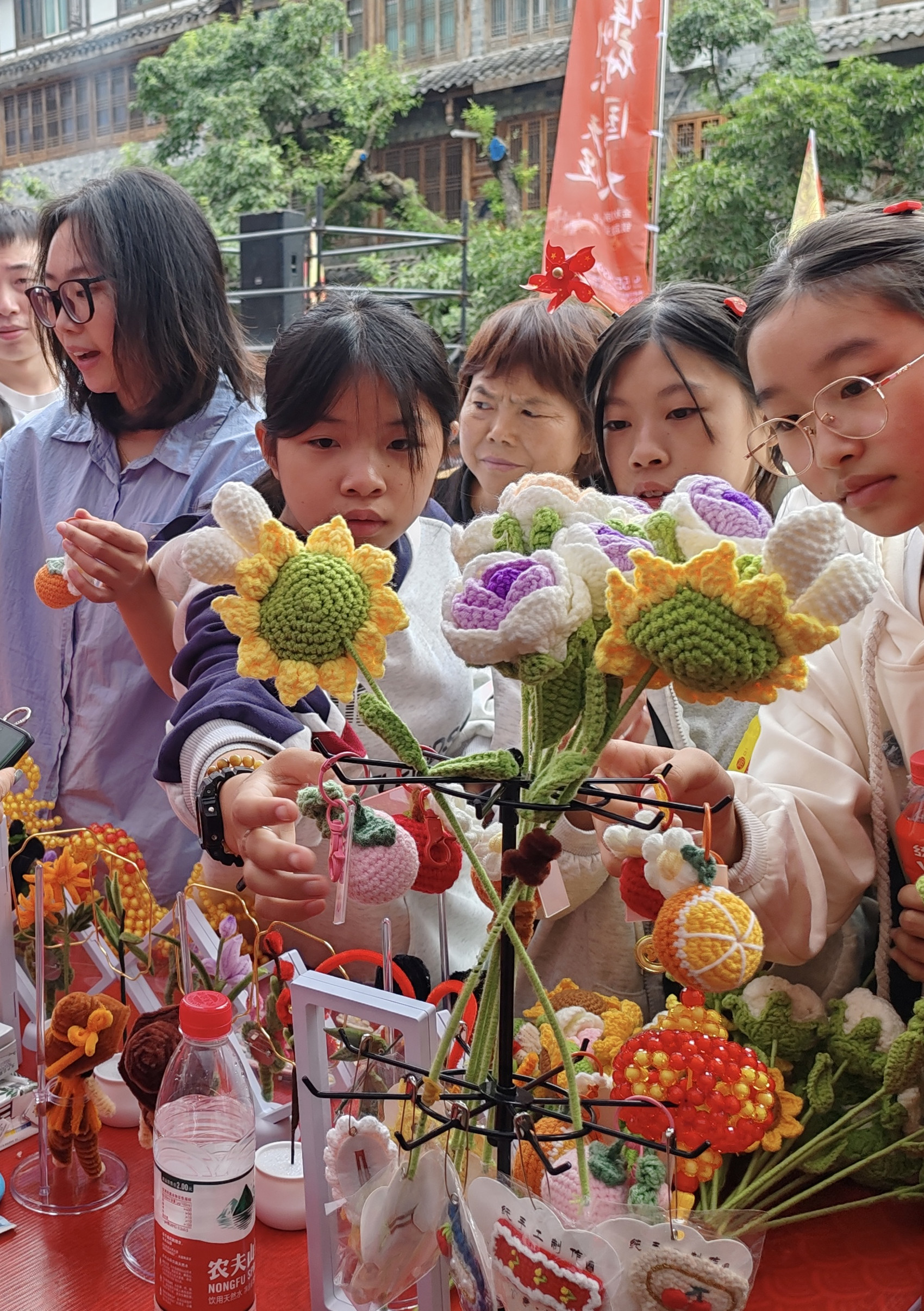 活动现场,郪王开城迎宾、郪王巡游等场景秀展现出郪江古镇延续千年的独特文化;在大英、中江、三台特色集市,中江手工面、郪江米花糖、竹编等地方特色产品受到游客热捧。