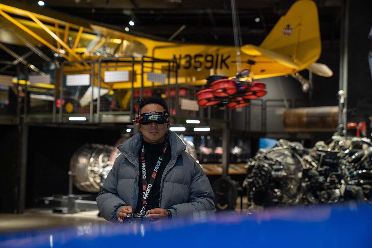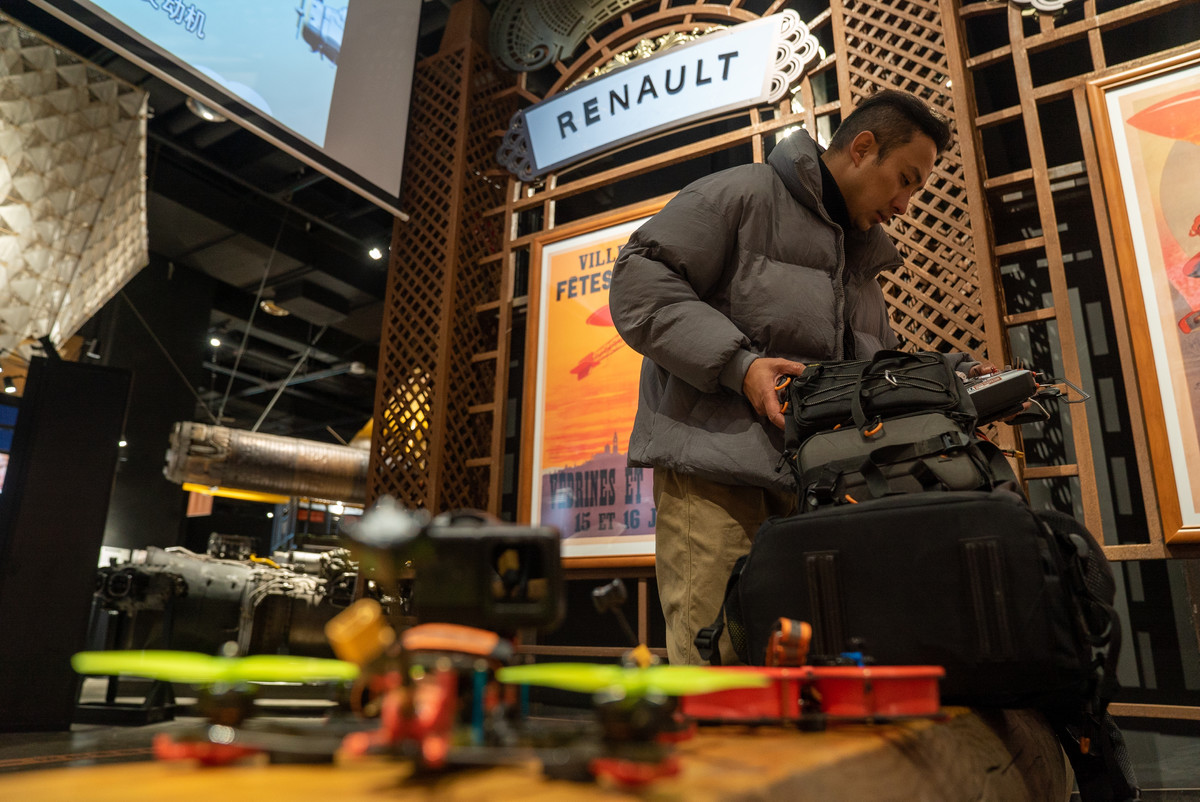 从大学毕业开始,余游便进入了成都一家地产公司做建筑设计,因为勘查楼体需要,他通过工作接触到了无人机航拍。2016年,在研究无人机拍摄技巧的过程中,一条新型飞行器的视频让余游颇为震撼。画面中,飞行器以第一视角穿越丛林、湖泊、又以超高的速度360度急停、急转,视觉冲击力极强。“那个视角太独特了,我完全被吸引进去,当时我就想立刻买一台来耍。”