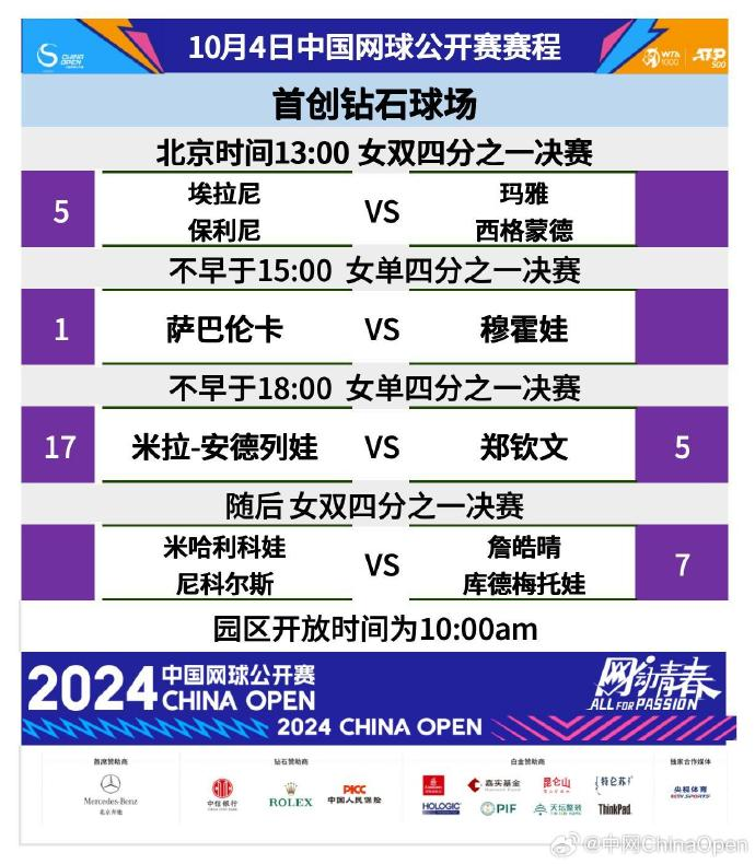 今日(4日)18点之后,中国选手郑钦文将出战中网女单四分之一决赛,她的对手是赛会17号种子、年仅17岁的小将安德列娃,这是双方首次交手,也是两位新生代球员之间的对决。