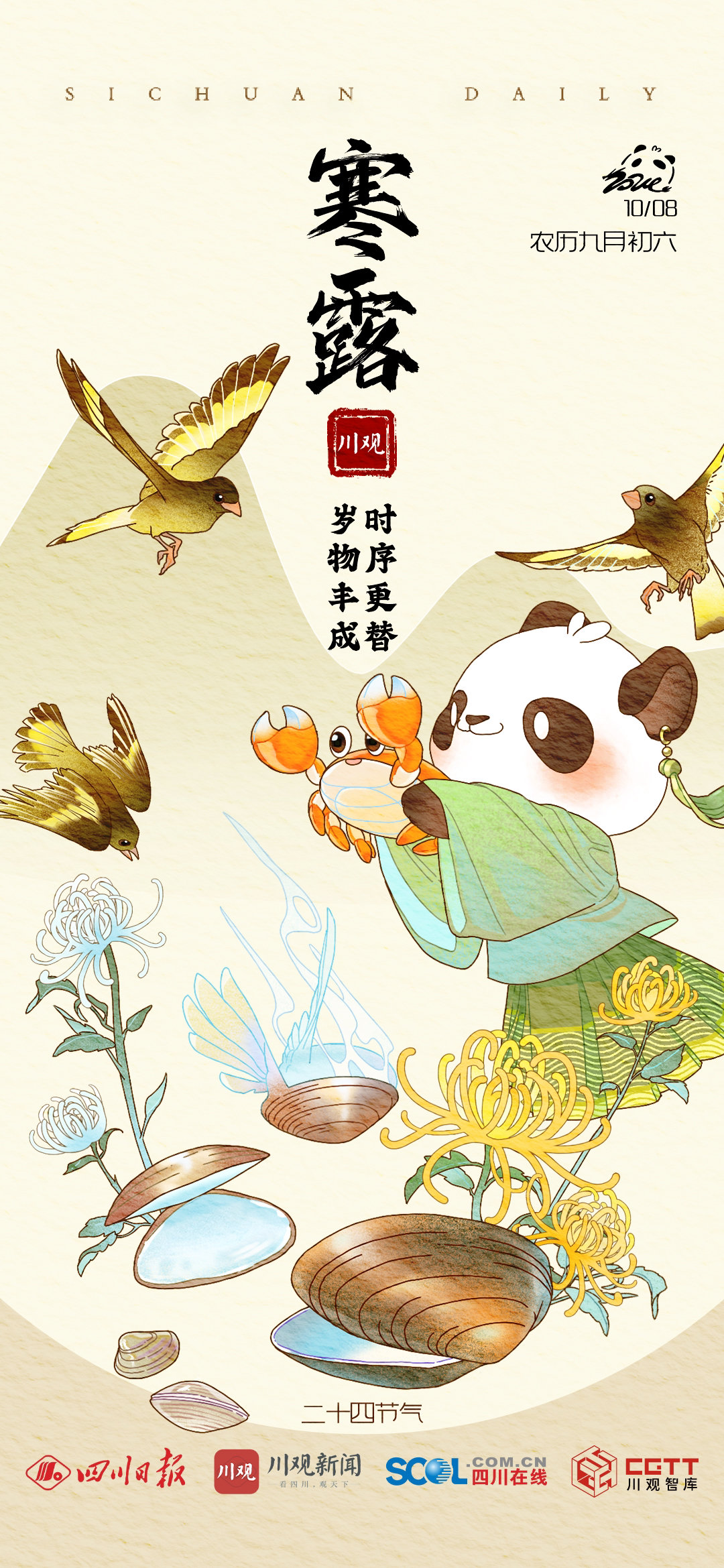 古人将寒露分为三候,“一候鸿雁来宾;二候雀入大水为蛤;三候菊有黄华。”