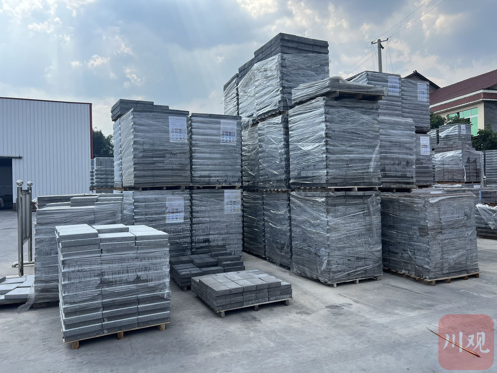 10月8日,国庆节后上班第一天,在宜宾市江安县四面山镇板栗村碾盘山组,宜宾市九牛强建材有限公司(以下简称“九牛强建材”)厂房里,一条全自动生产线正全负荷生产,工人们将一摞摞路沿石打包上车,准备运往县内和川南各地。目前,宜宾及周边地区60%以上的路面砖、路沿石都产自这里,2023年,九牛强建材产值超千万元。
