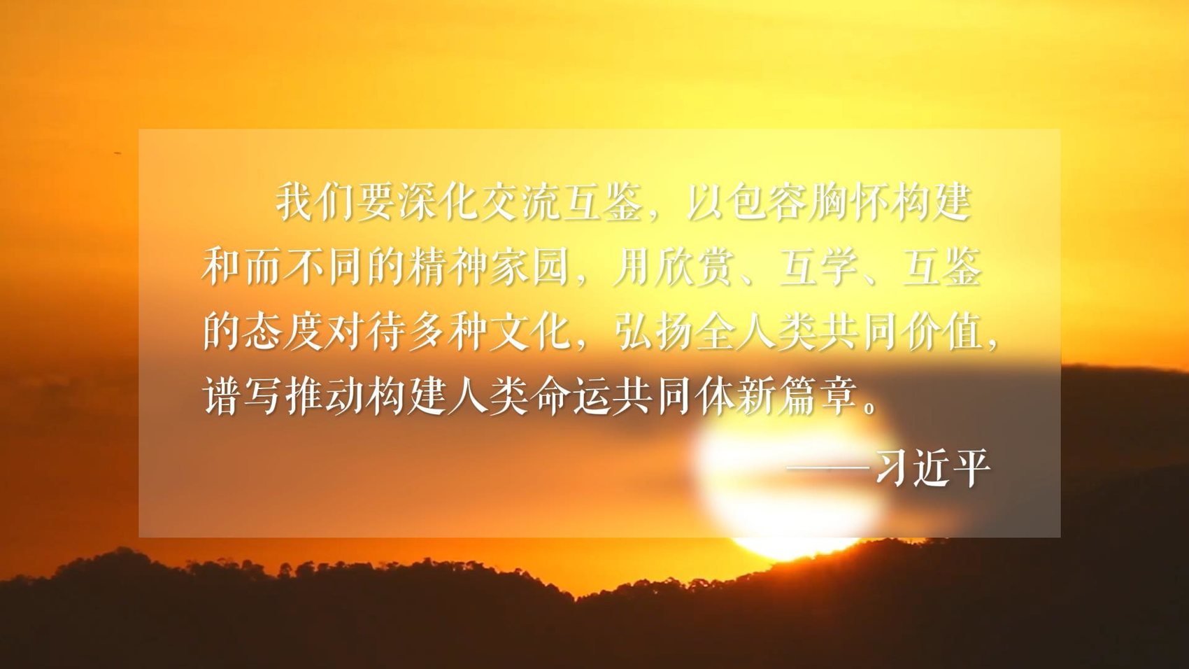 我们要深化交流互鉴,以包容胸怀构建和而不同的精神家园,用欣赏、互学、互鉴的态度对待多种文化,弘扬全人类共同价值,谱写推动构建人类命运共同体新篇章。