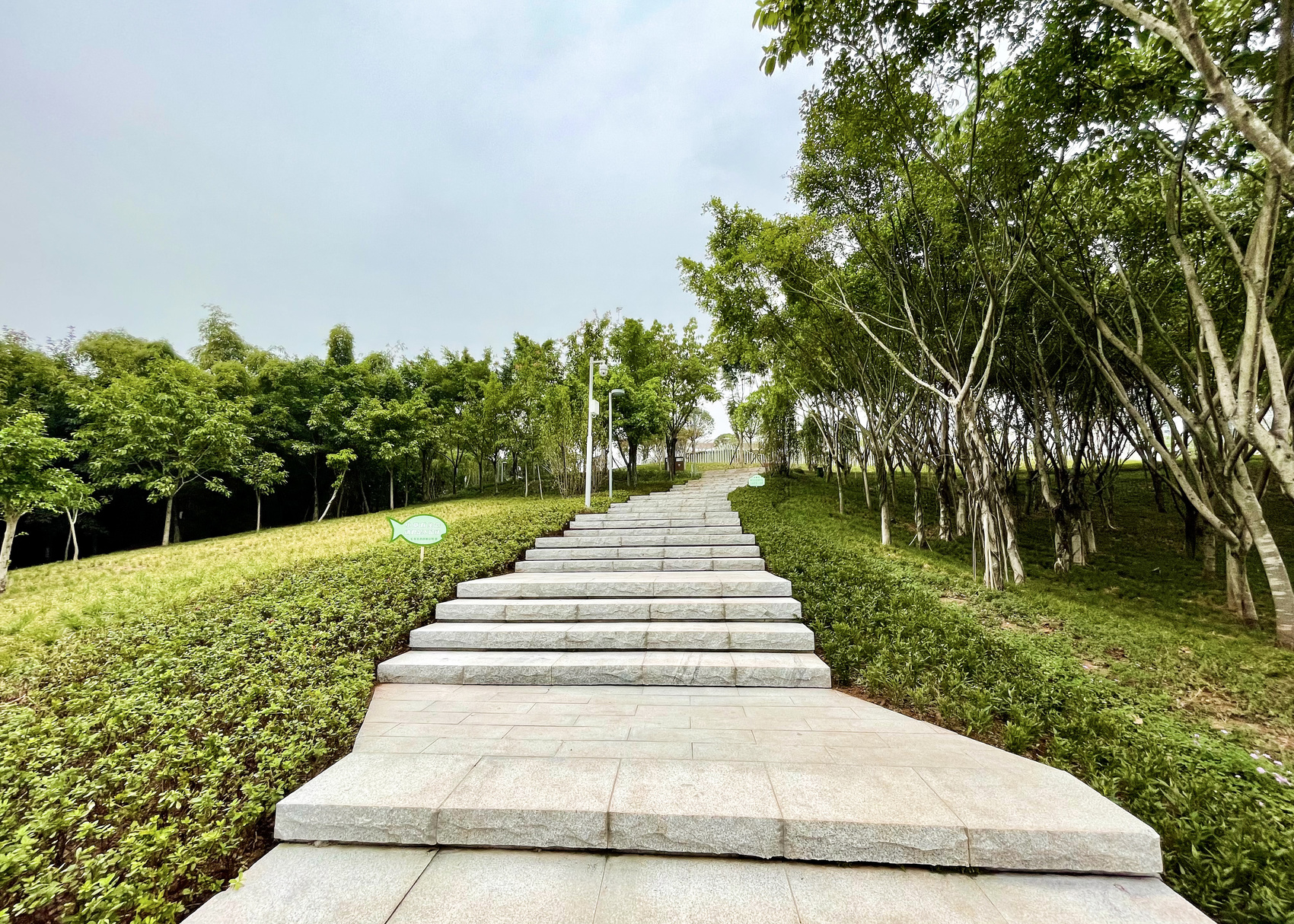据了解,翁田社区山体公园毗邻大湾社区口袋公园、怡景苑小区,与蜀光绿盛实验学校南湖校区一街之隔。该公园总占地面积40.5亩,新建园路及场地铺装6000平方米,形成公园游览步道环线508米,保留原生乔木14500平方米。