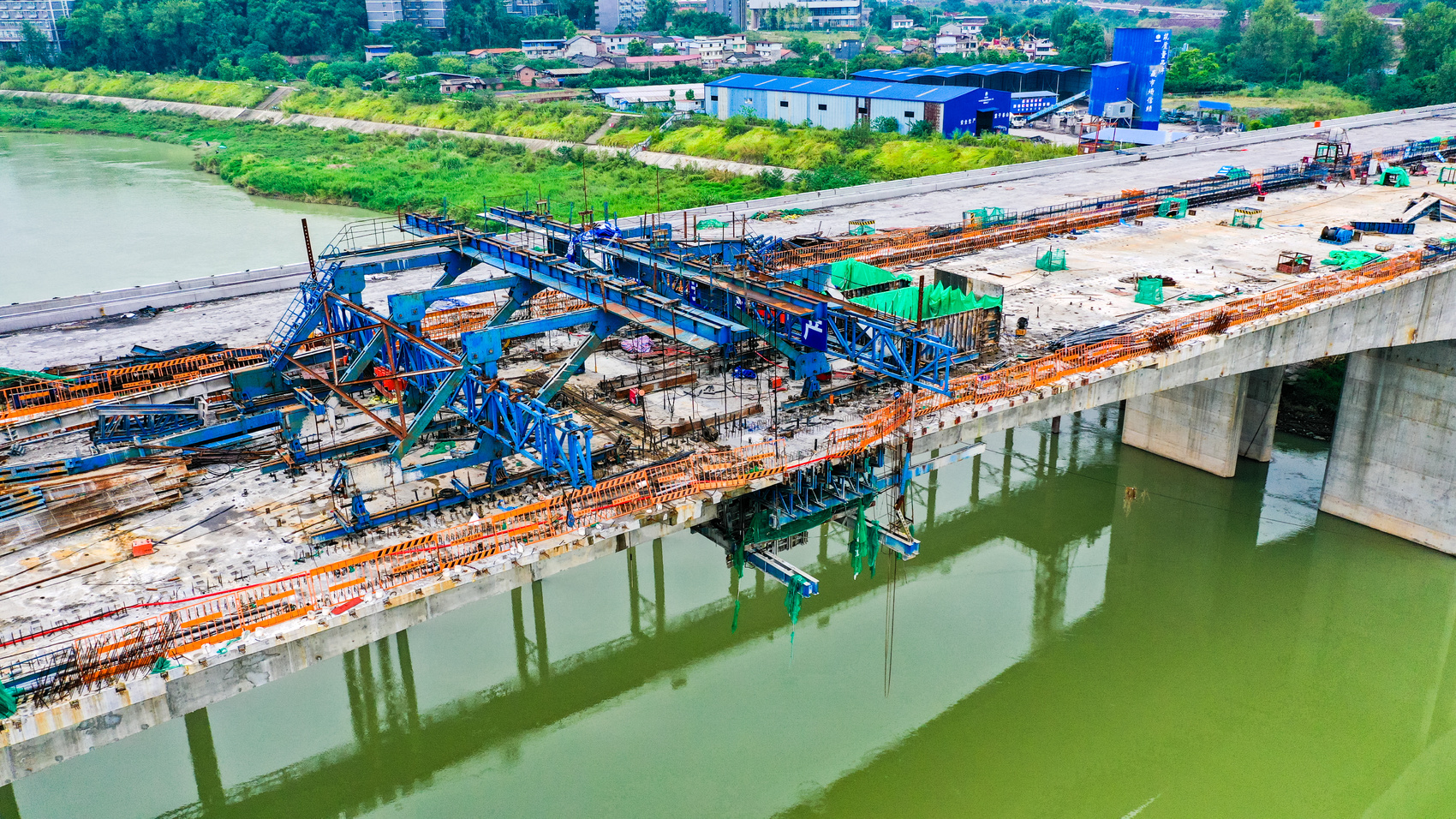 项目施工单位、四川能投建工集团有限公司第一分公司相关负责人介绍,合龙段采用菱形挂篮作为合龙段施工平台,并采取从顶推、钢筋、模板、预应力施工的技术,质量标准严格按设计及规范要求执行。中跨合龙段设计长度是2米,采用C60的微膨胀高性能混凝土,设计方量是49立方,整个浇筑过程持续约4小时,必须保证混凝土一次性连续浇筑完成。