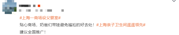 “父婴室”的概念也许一时无法完全推广,也存在着一些具体落地困难,但其的确打开了更多可能,有助于推动鼓励夫妻共同育儿的社会共识。“男性在公共场合的育儿需求”这件事,应当被考虑,也值得被提倡。