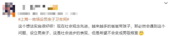 近日,上海有商场推出“男亲子卫生间”,引发舆论关注。有的网友称其为“父婴室”,并希望在更多地方推广。