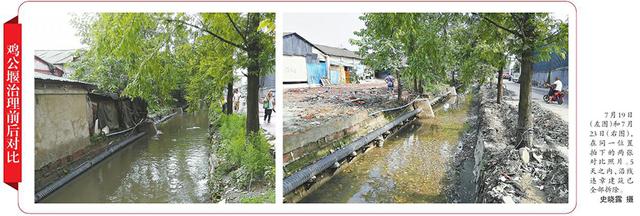 7月22日,鸡公堰沿岸侵占河道的违章建筑全部被拆除,累计拆除河道违法建设38处,拆除面积约7500平方米。
