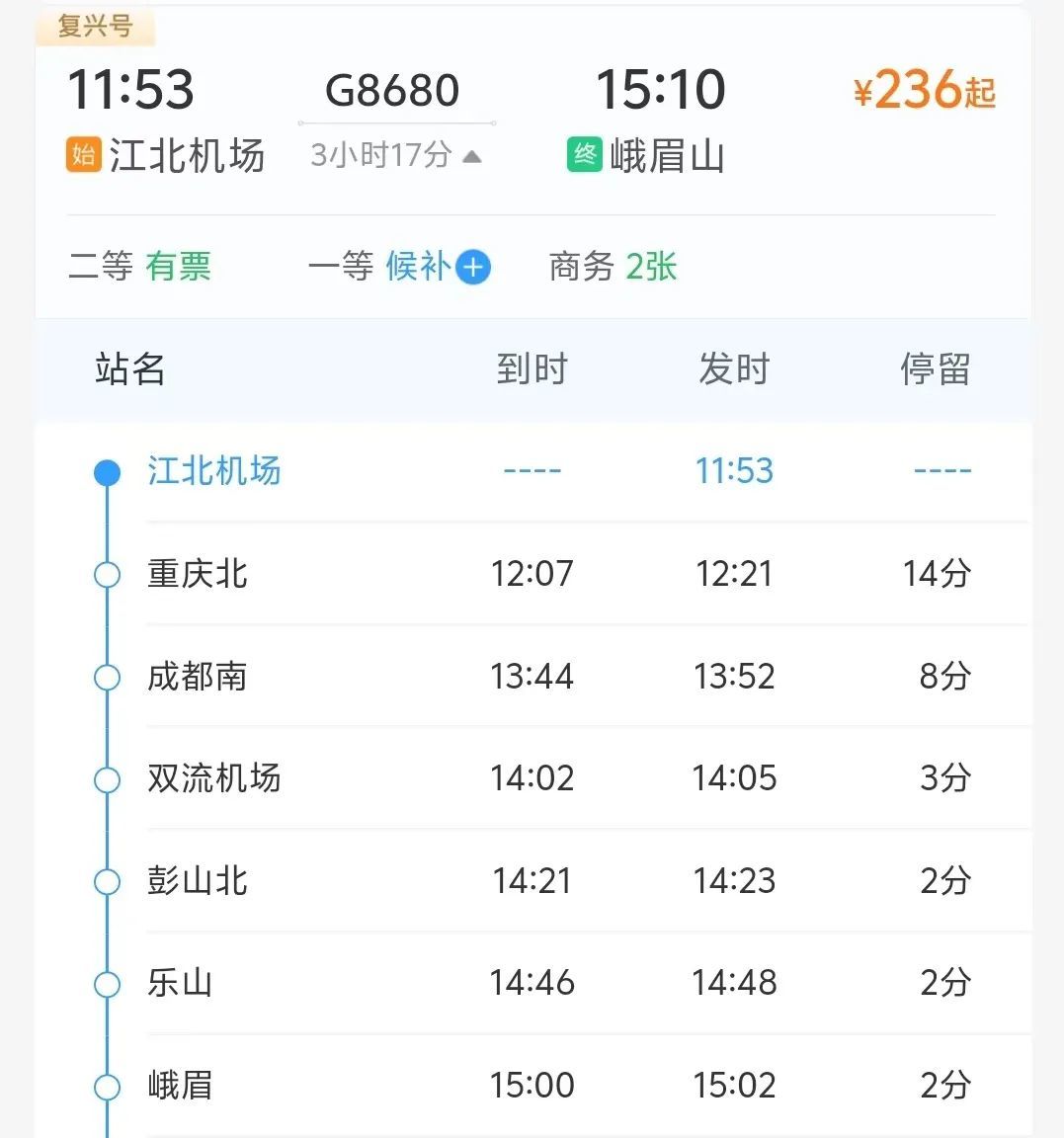 “飞机+高铁”的联运行程