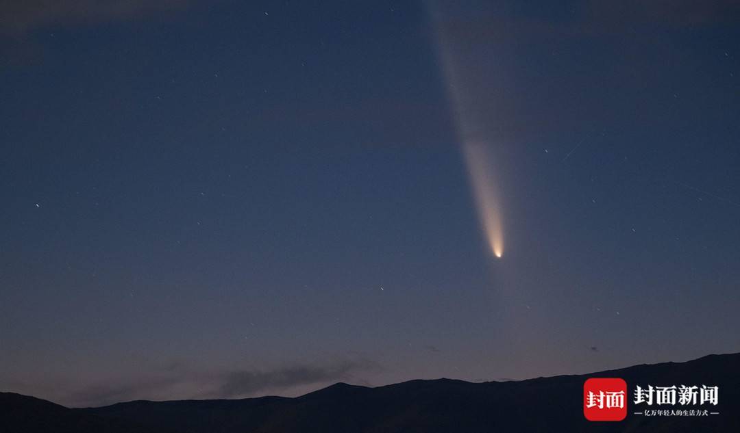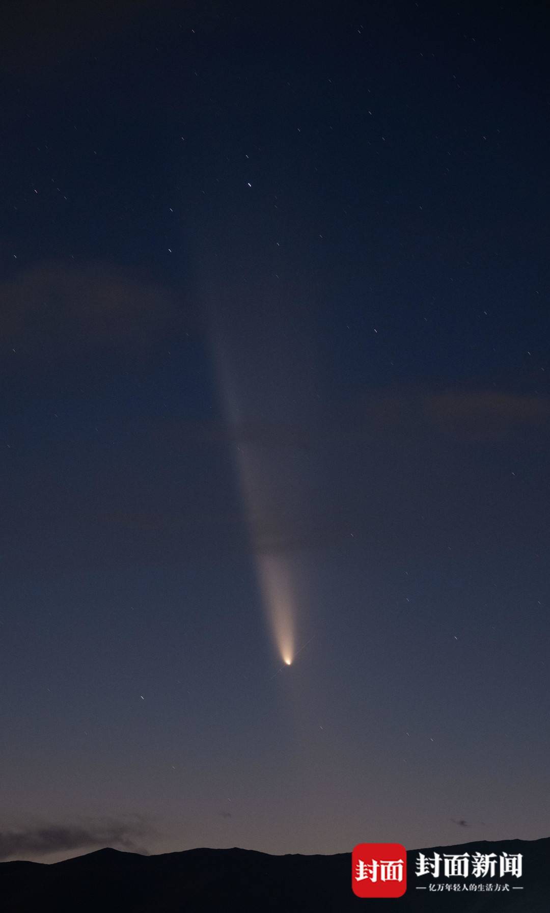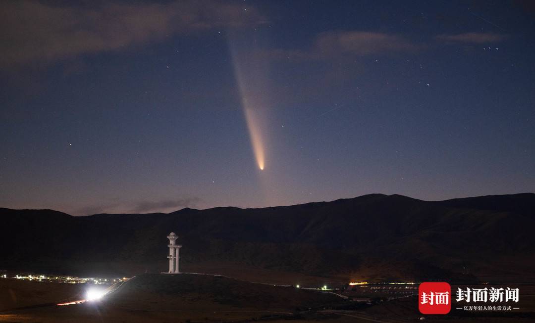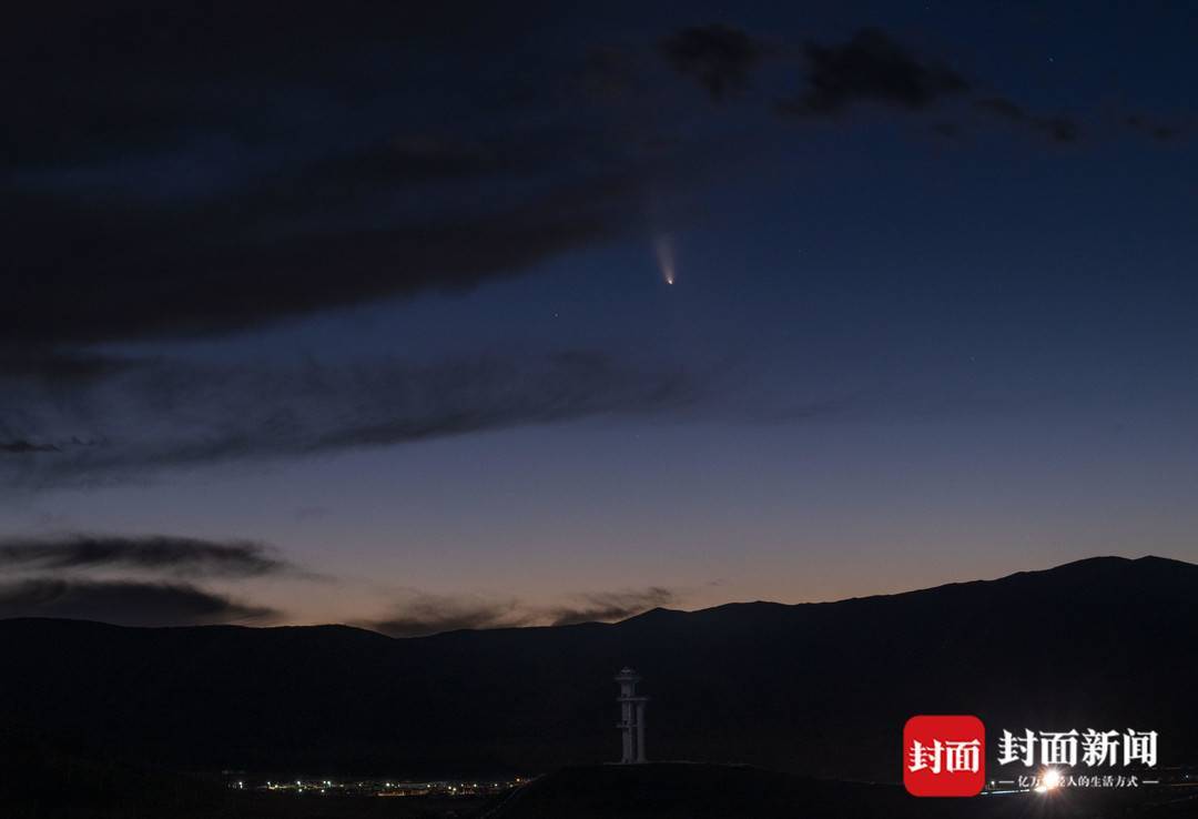 10月13日,四川省阿坝州红原县,紫金山-阿特拉斯彗星拖着长长的彗尾,出现在西边天空。