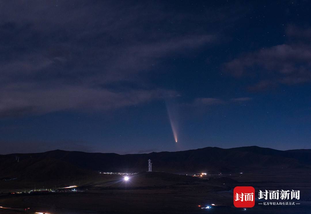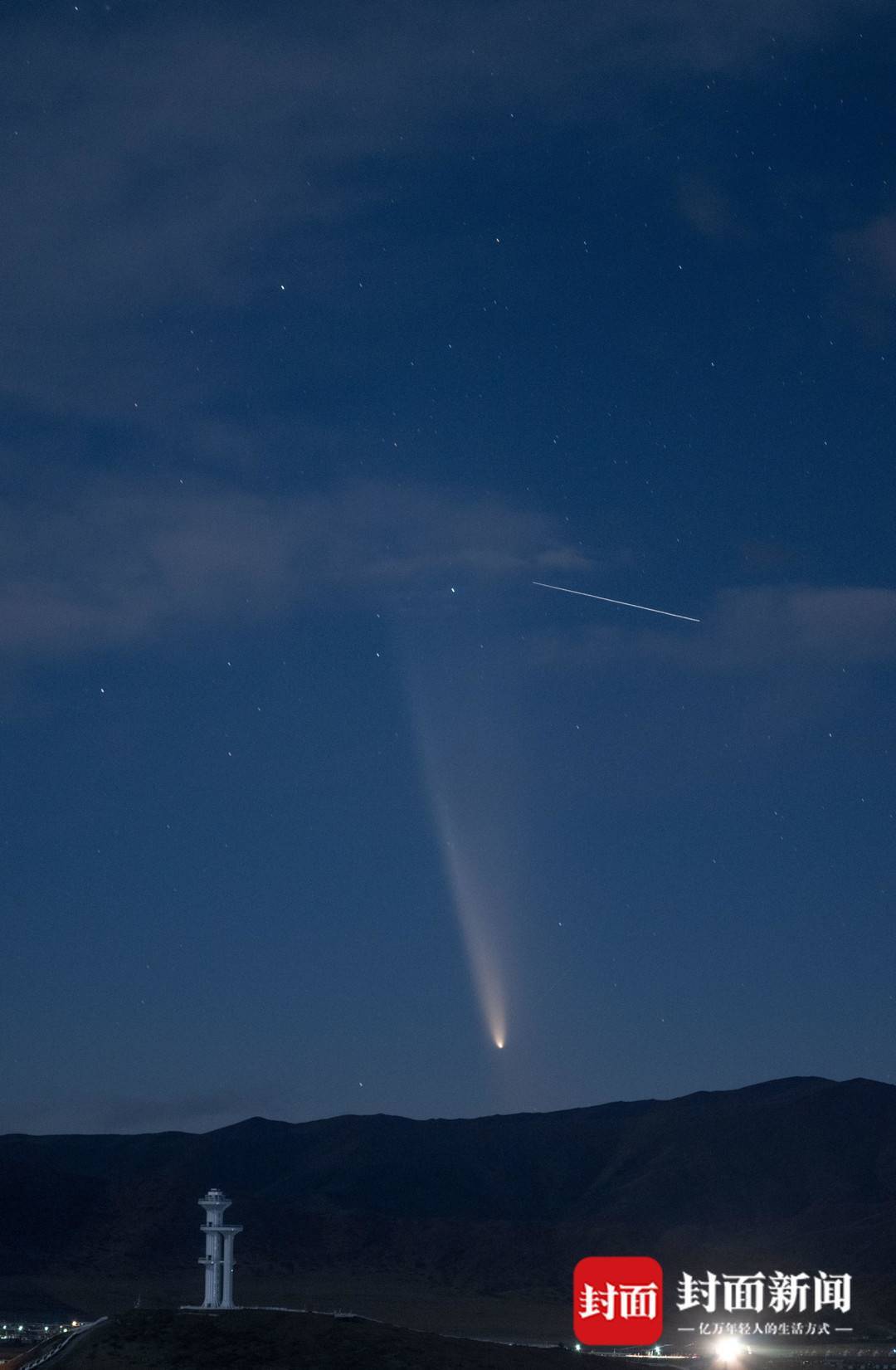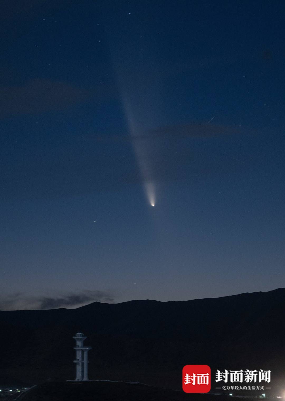 10月13日,四川省阿坝州红原县,紫金山-阿特拉斯彗星拖着长长的彗尾,出现在西边天空。