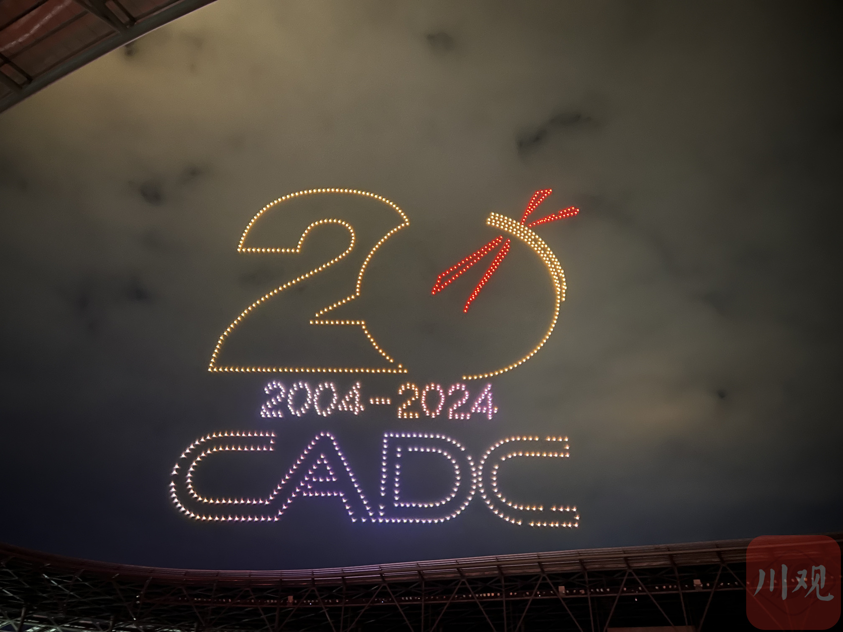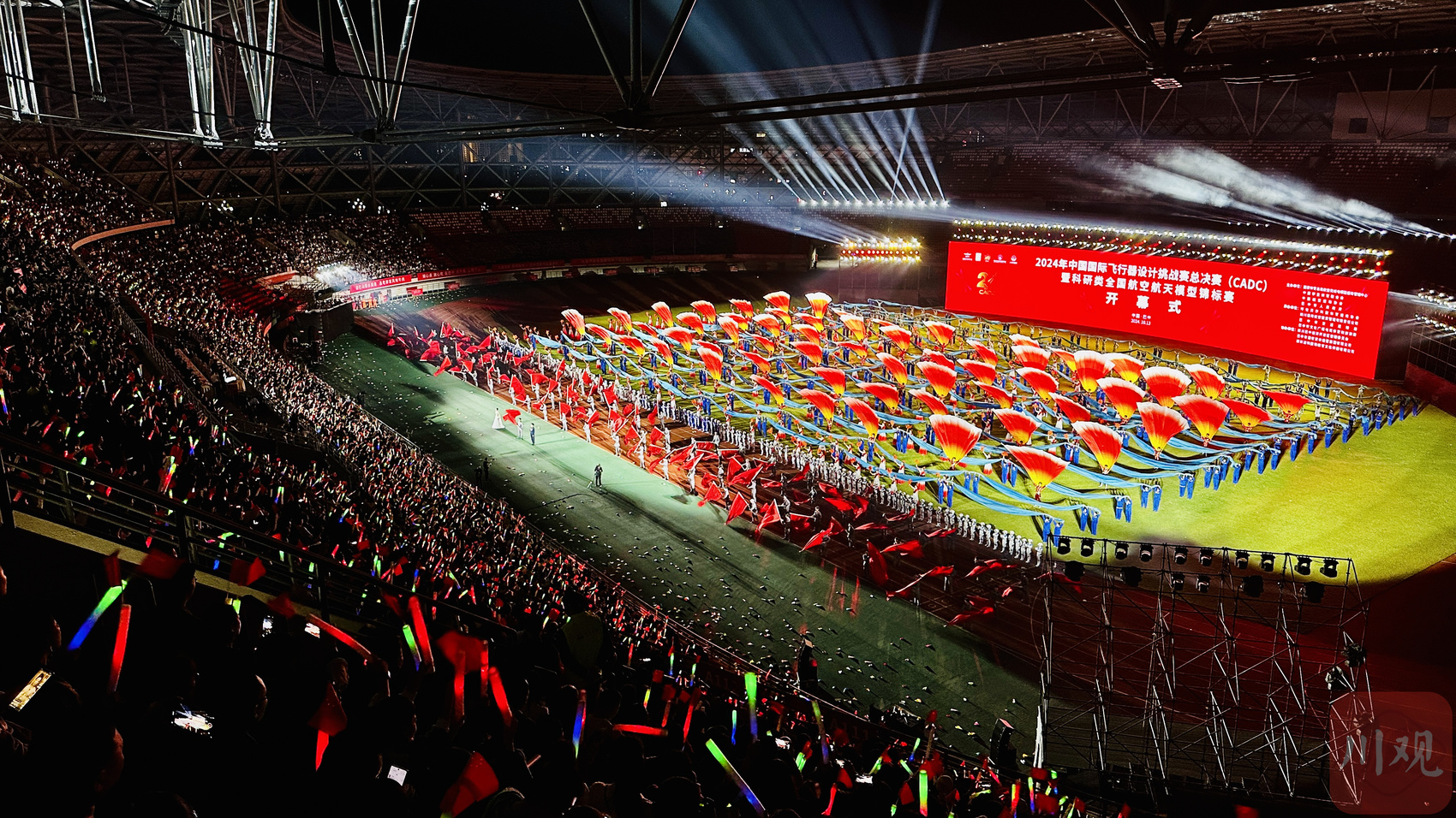 作为世界大学生飞行器设计类竞赛的三大顶级赛事之一,今年是该赛事举办的二十周年。随着开幕式的正式启动,活动现场的上万名观众与参赛选手将希望与祝福注入手中折好的纸飞机,跟随指令一起放飞。随后,CADC20周年烟花秀上演,璀璨绚丽的烟花点亮巴中市体育中心的上空,与场馆内盘旋的五彩斑斓的纸飞机交相辉映,形成一道亮丽的风景线。