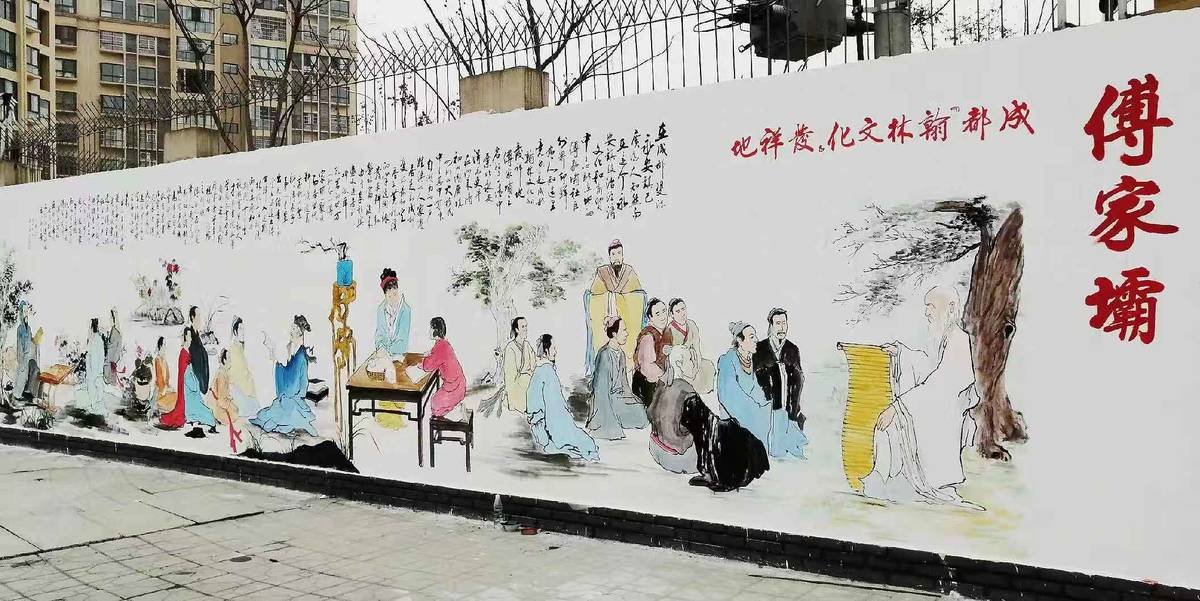 当葡萄产业日益兴旺,便开始反哺社区文化教育。“这不仅是一幅艺术墙绘,也是我们付家坝的根!”2019年1月,永安镇首个大型“翰林文化”绘画艺术墙在社区亮相。同年,成都首个乡村书画院这里开馆,让高雅的“生活美学”书画艺术进乡村、进农家,满足新时代市民和农民对美好生活的向往。社区坚持文化育人,营造全民共学、文明和谐的氛围,也为基层治理奠定了良好基础。